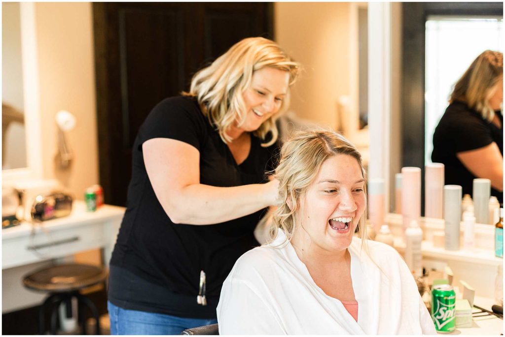 We began the wedding day at the Bridal Suite at Sandy Pines Golf Course/Pavilion which was absolutely STUNNING! This bridal suite is what wedding photographer dreams are made of, without a doubt. The guys spent their morning golfing on the course while the girls were getting all dolled up by my friends over at The Beauty Company!