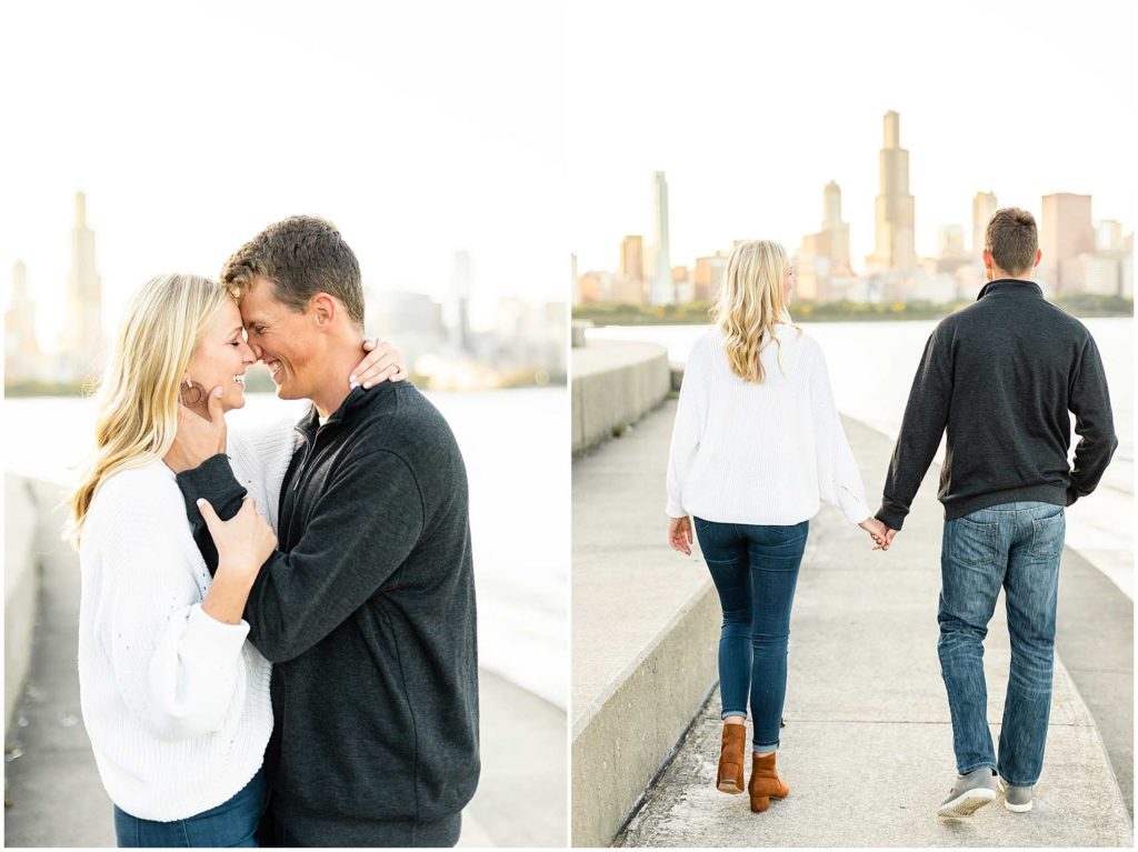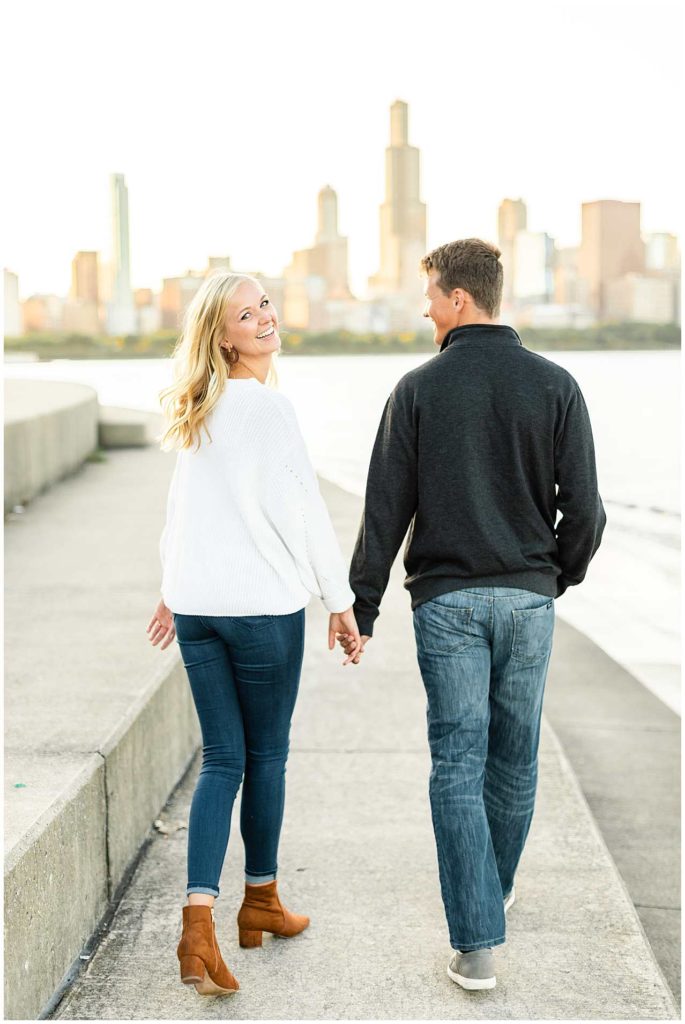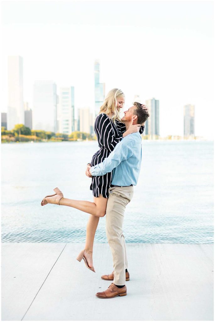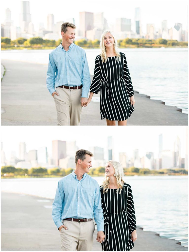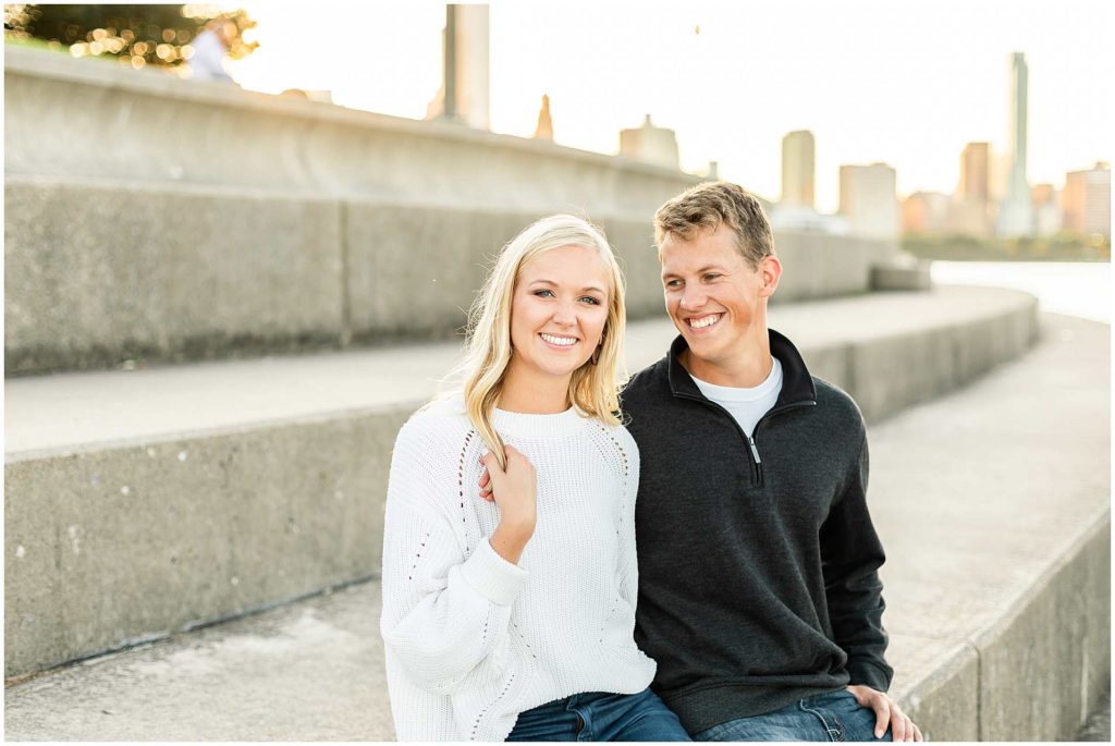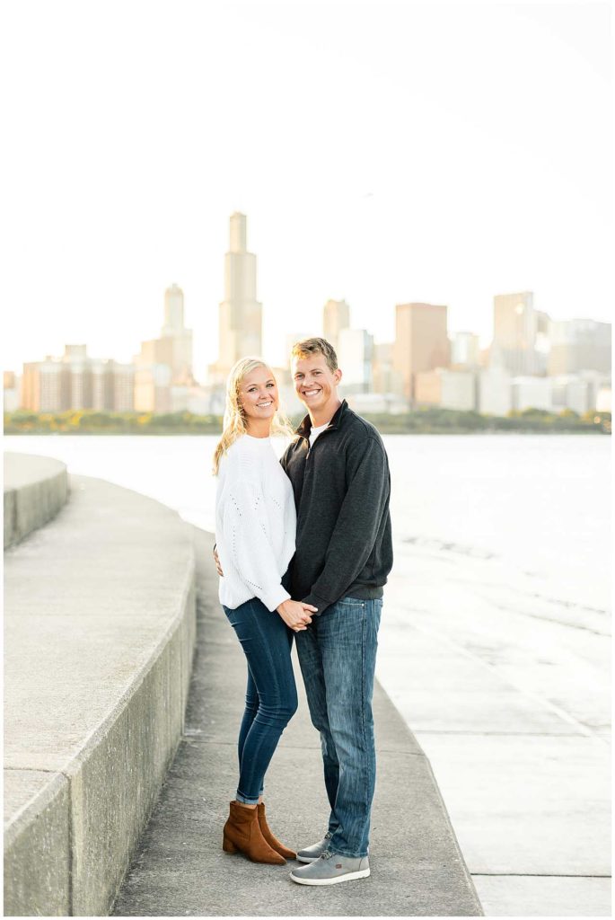 Fast forward to the night of the engagement session-it was absolutely perfect weather (especially with all of the rain we’ve been experiencing lately), and these two showed up in the best outfits with the most genuine smiles for each other. As we walked all around the Shedd Aquarium and Adler Planetarium, we found the most beautiful locations with the best views. I could have photographed these two ALL NIGHT if they would have let me (and if the sun would just stay out all night 🙂 )