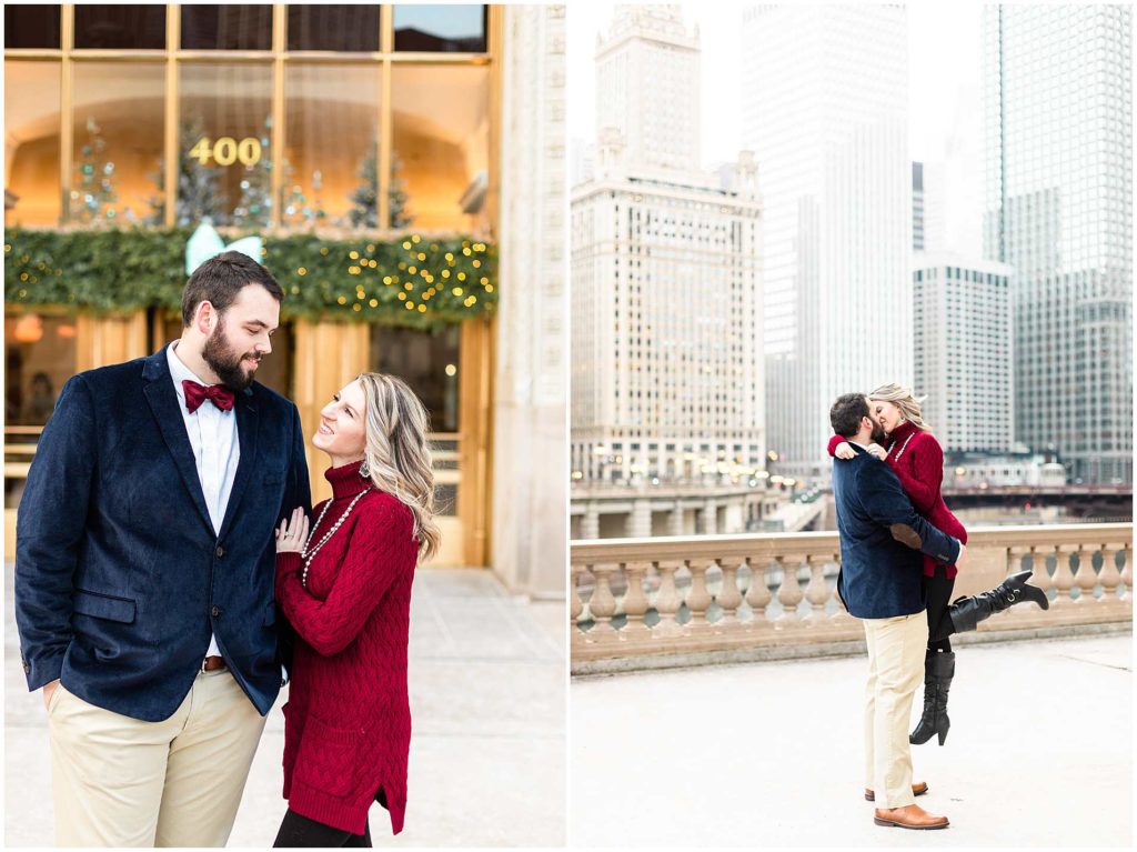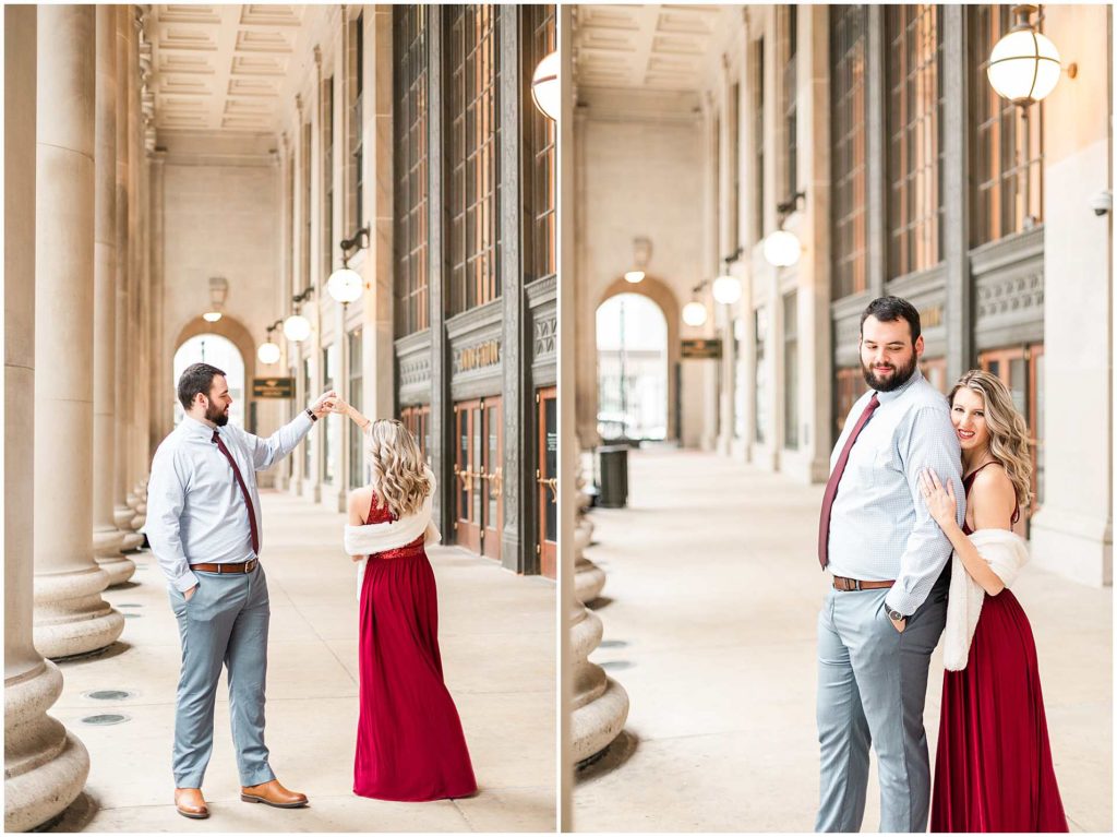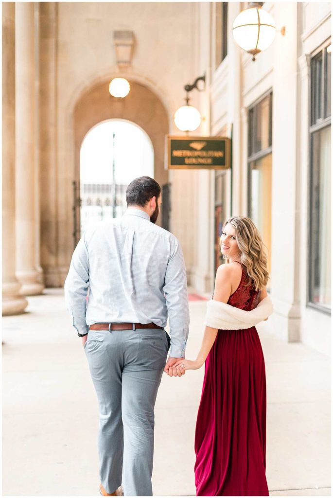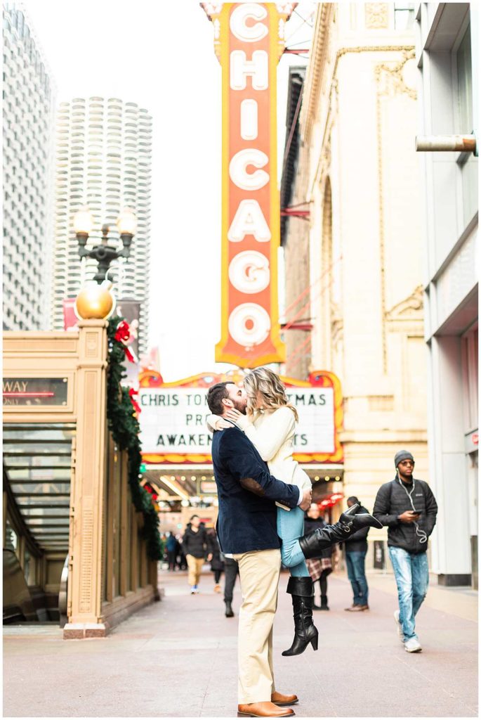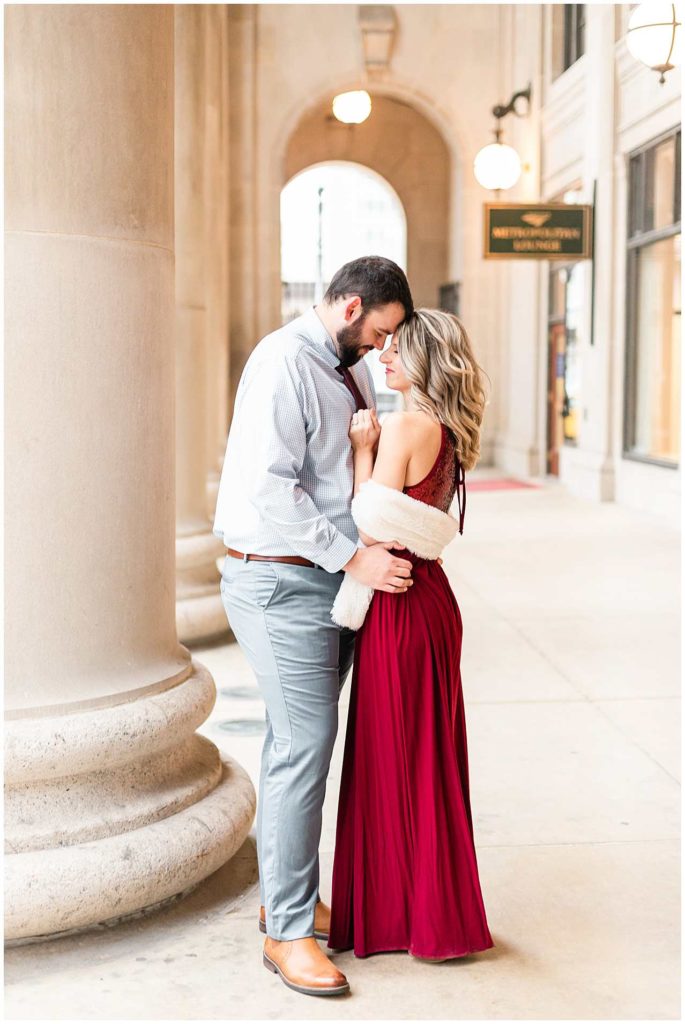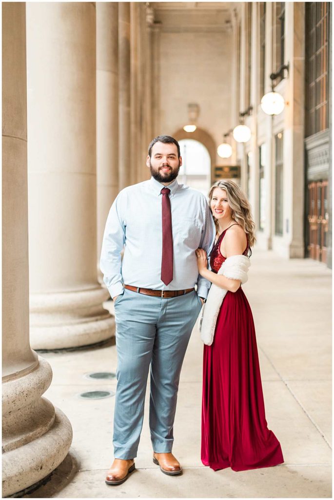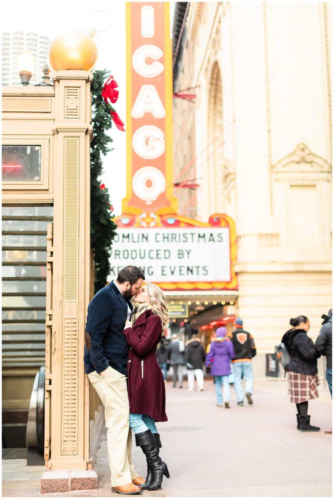 This session look place at some of my favorite locations in Chicago for engagement photos. We began at the Chicago Theater which is a must-see when visiting Chicago, not to mention that it is iconic for photos! We then headed to The Wrigley Building which is such a classic and elegant location. Since their Christmas decor (including the GIANT Christmas tree) were put up, we definitely took advantage of all the Christmas-y vibes. For the last location, we went to Union Station which is one of my all time favorites! Union Station is so, so elegant, and I could have photographed Troy and Heather here all day if they let me!