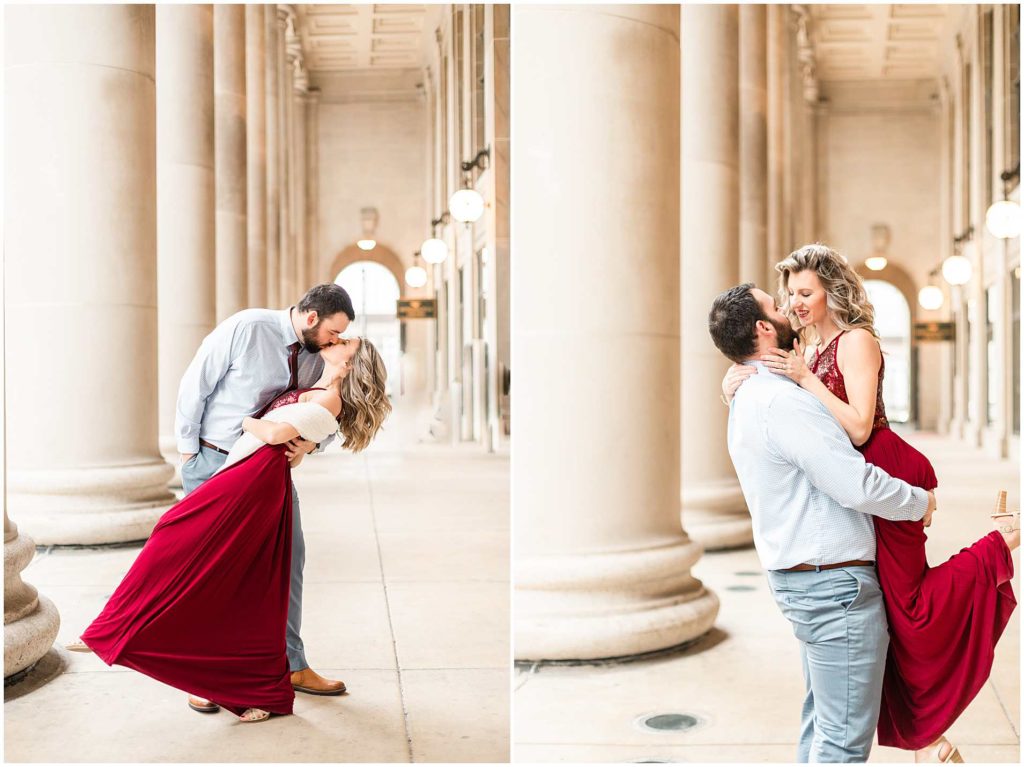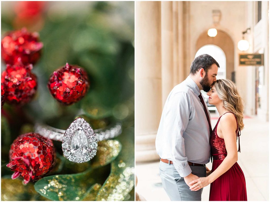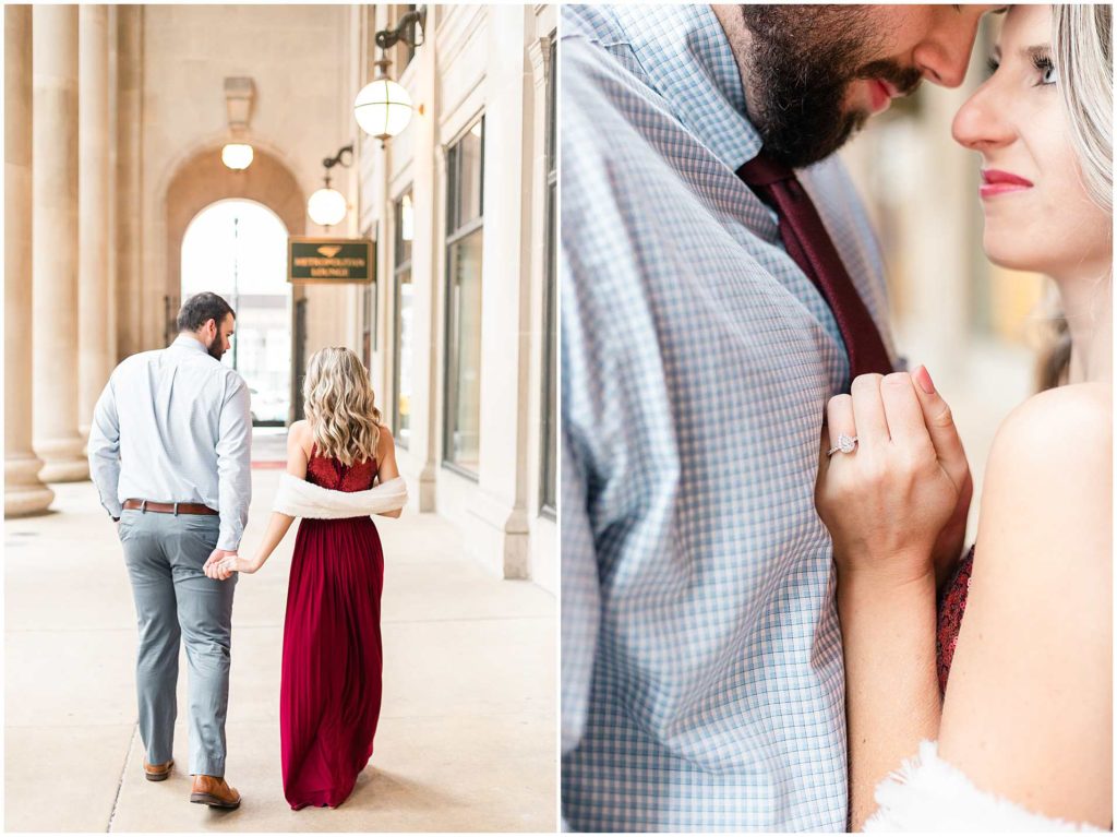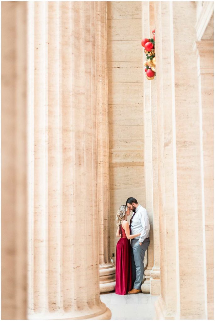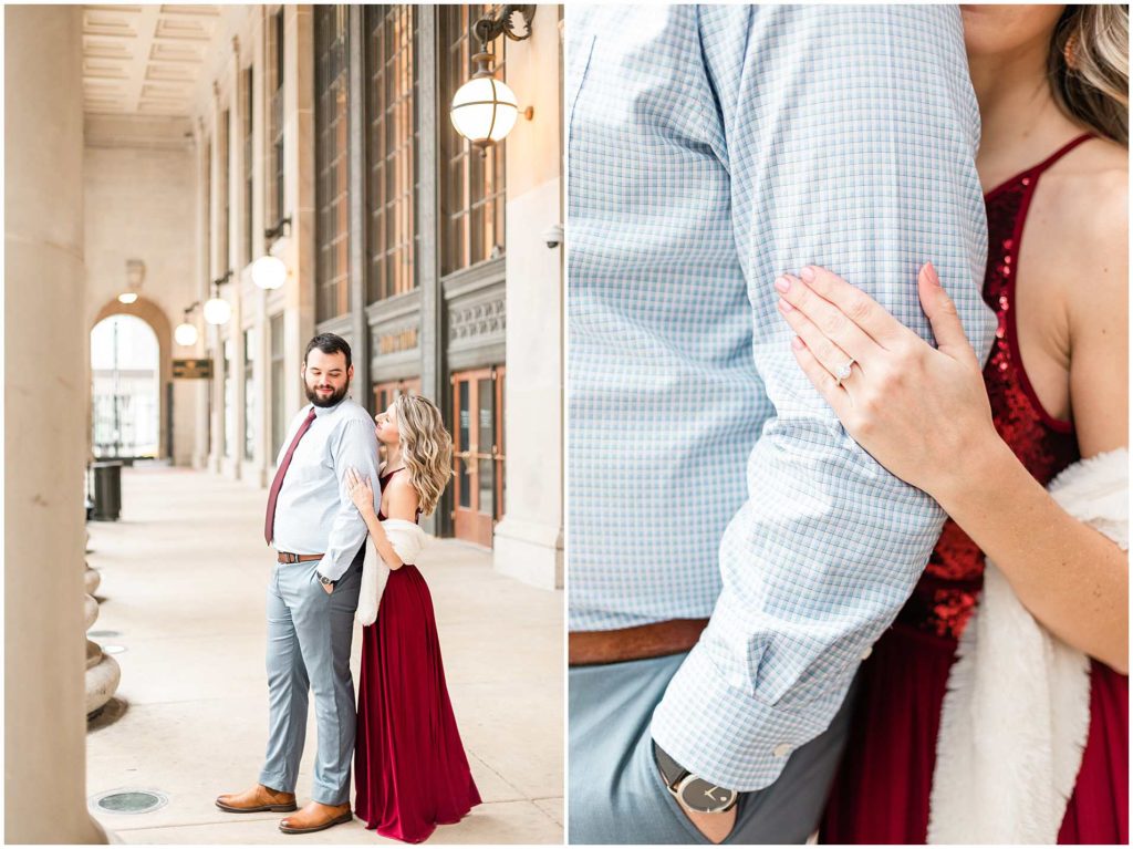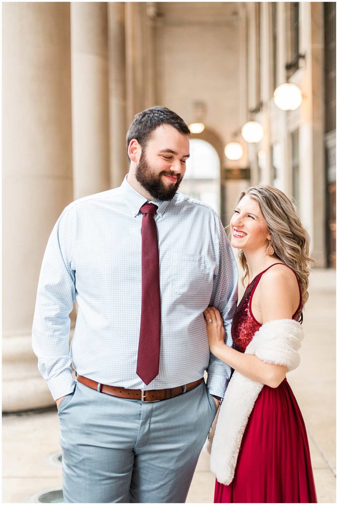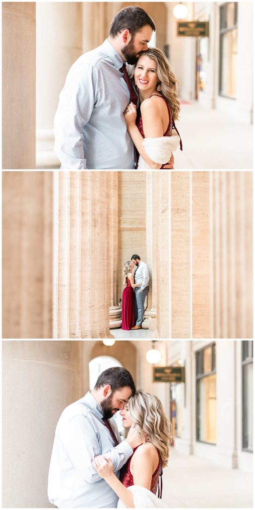 This session look place at some of my favorite locations in Chicago for engagement photos. We began at the Chicago Theater which is a must-see when visiting Chicago, not to mention that it is iconic for photos! We then headed to The Wrigley Building which is such a classic and elegant location. Since their Christmas decor (including the GIANT Christmas tree) were put up, we definitely took advantage of all the Christmas-y vibes. For the last location, we went to Union Station which is one of my all time favorites! Union Station is so, so elegant, and I could have photographed Troy and Heather here all day if they let me!