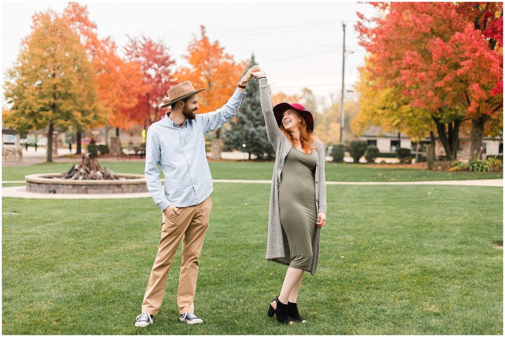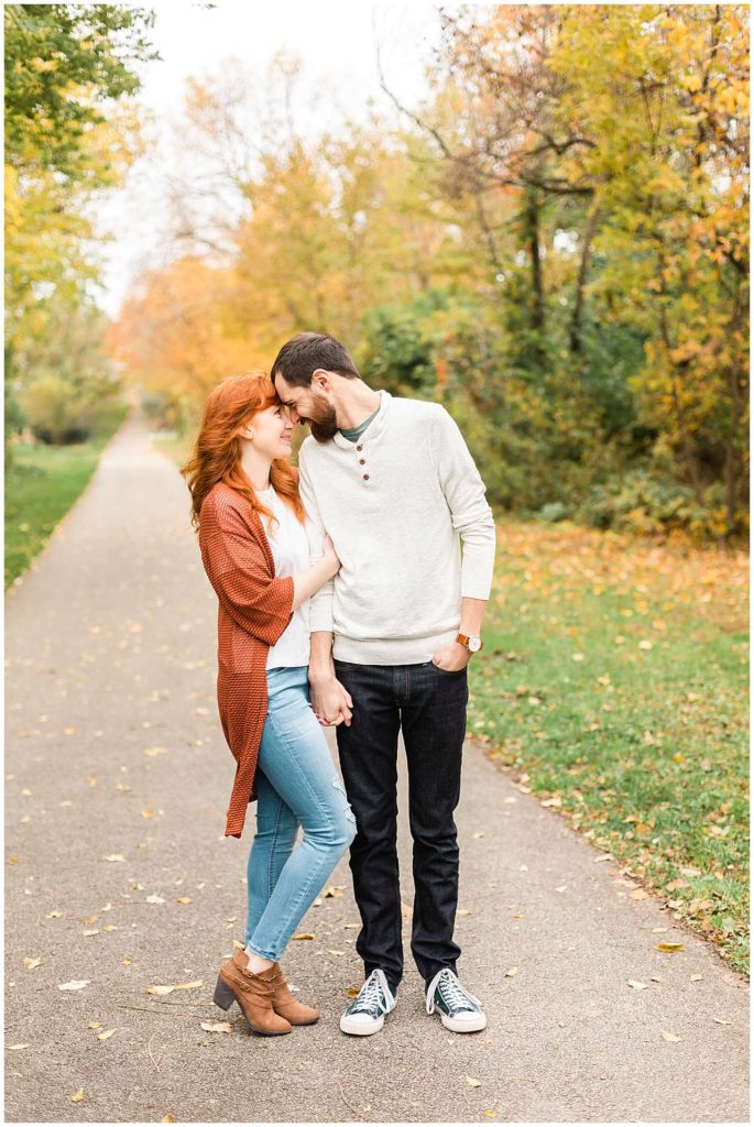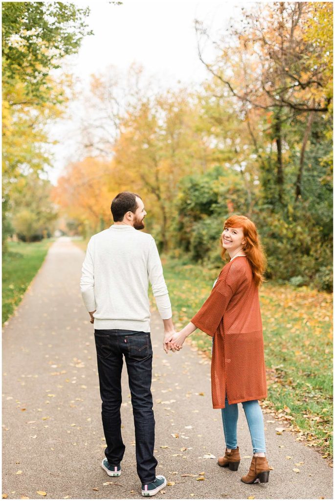 Katie and Grant’s Fall engagement session was such a blast. We walked around Historic Downtown Frankfort and took advantage of all of the pretty buildings and the gorgeous pond/nature area near by.