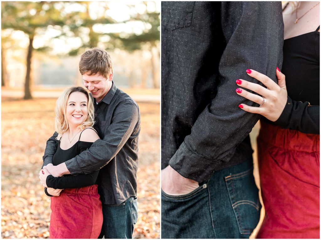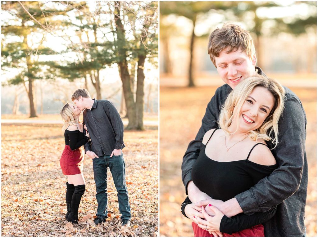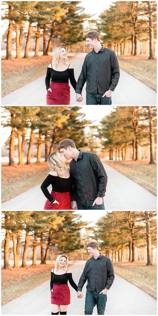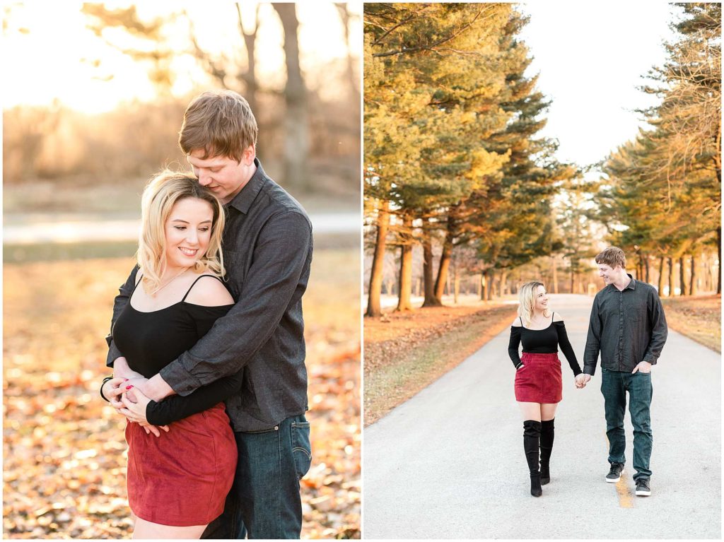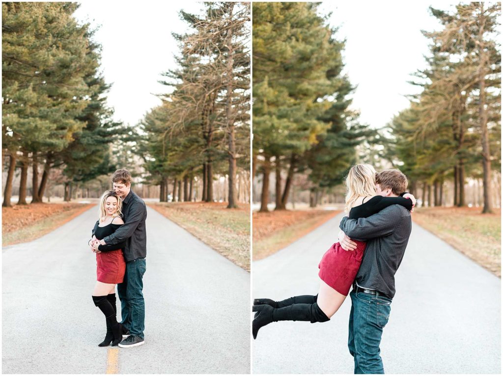Engagement sessions in the winter are more rare around here, just because things tend to look “dead” and “dreary” during Illinois winters. Because I knew the state park had areas with trees that don’t loose their green in the winter, we went with this location, and I’m so happy we did! Engagement sessions don’t have to look dead and dreary!