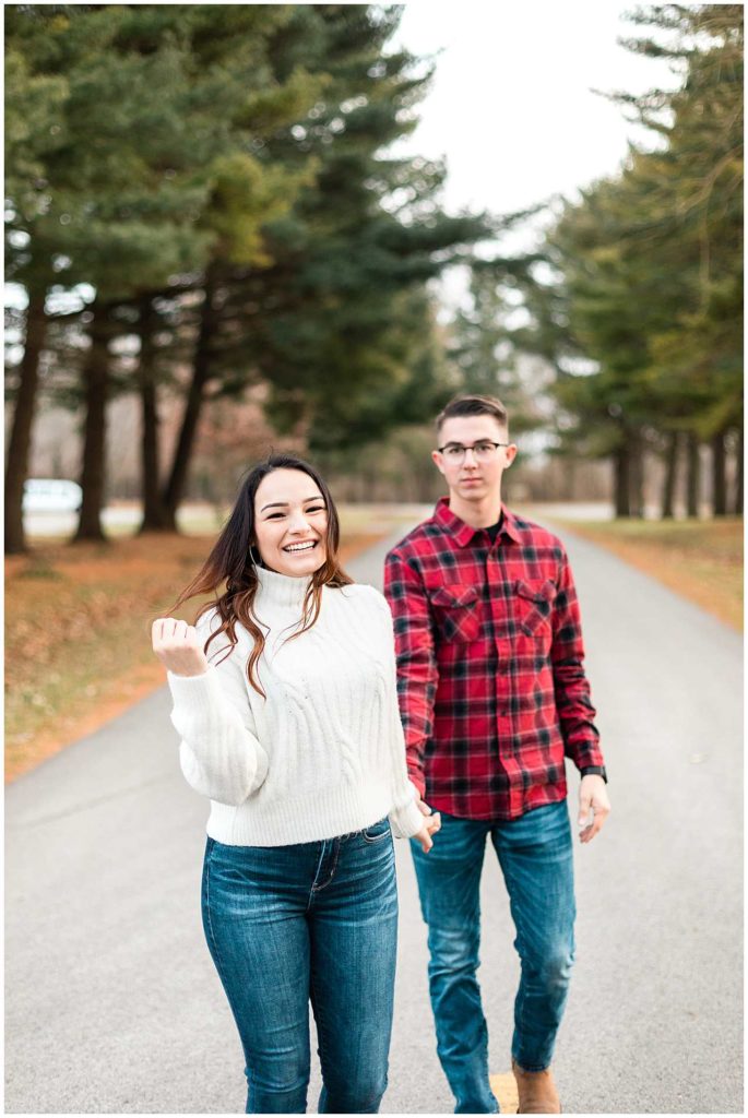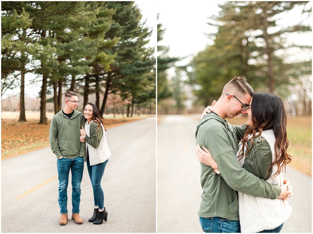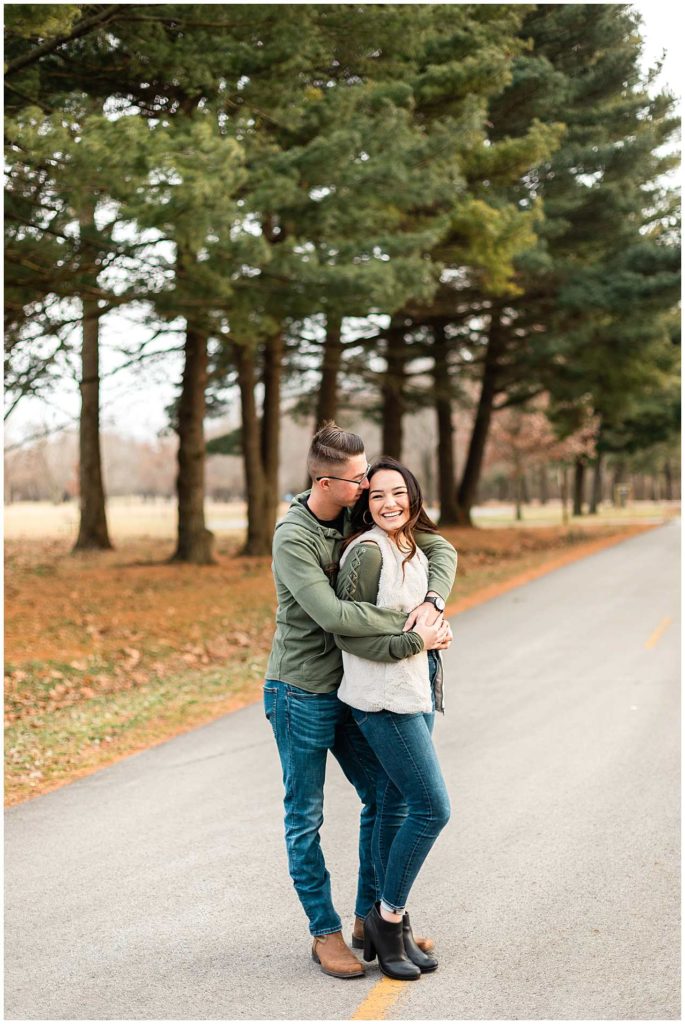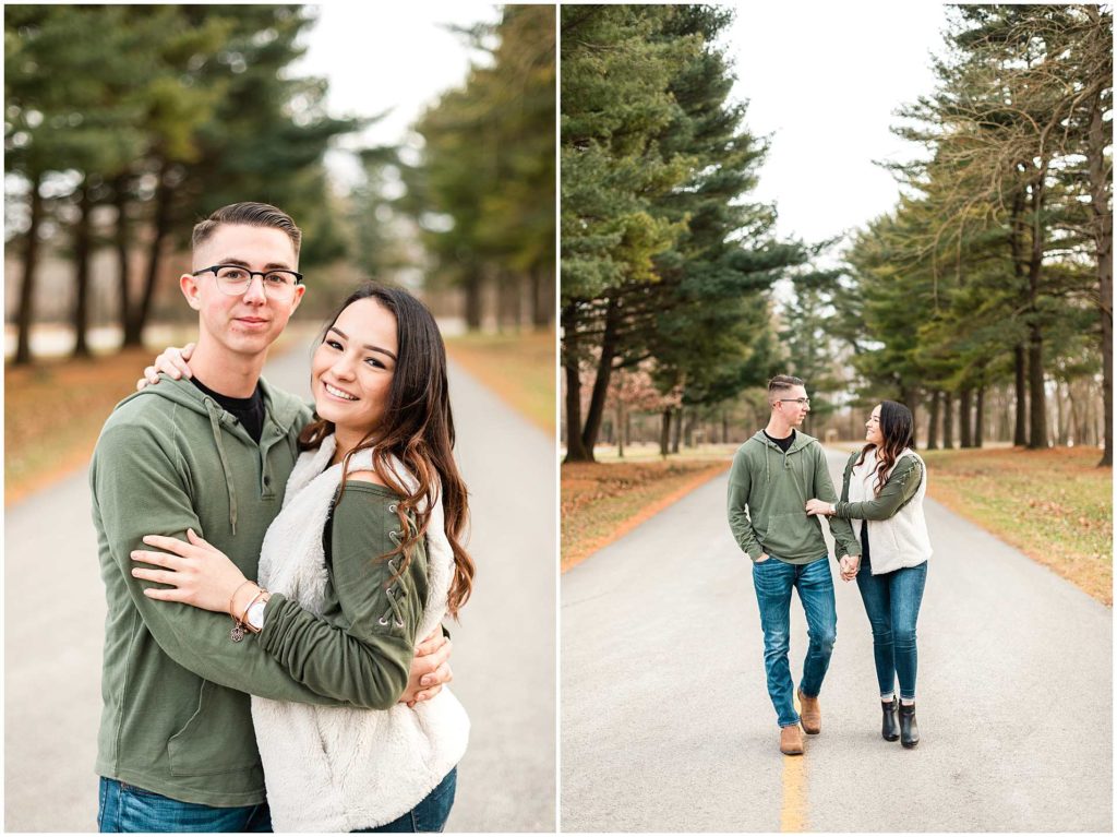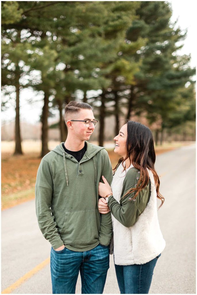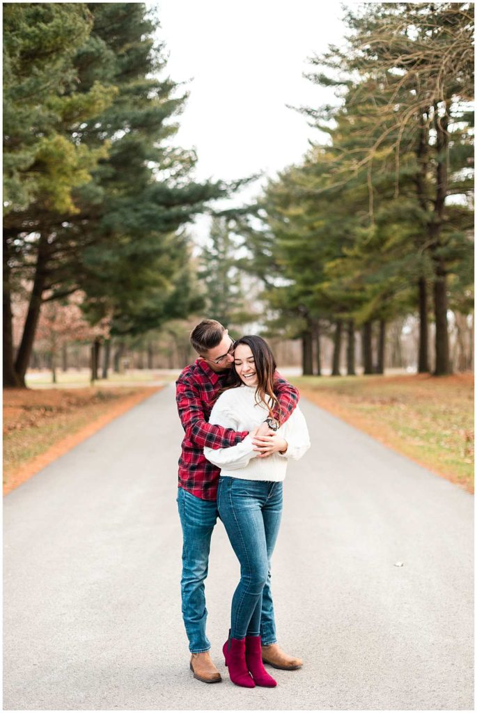 Olivia was one of my very first friends! We grew up being neighbors, and I absolutely loved getting to photograph her and Steven! Especially during the winter months, Kankakee River State Park is one of my very favorite engagement photo locations in Kankakee County. These trees stay green all year round, and if you know me, you know I love color and vibrancy in my photos so the green is wonderful! 🙂