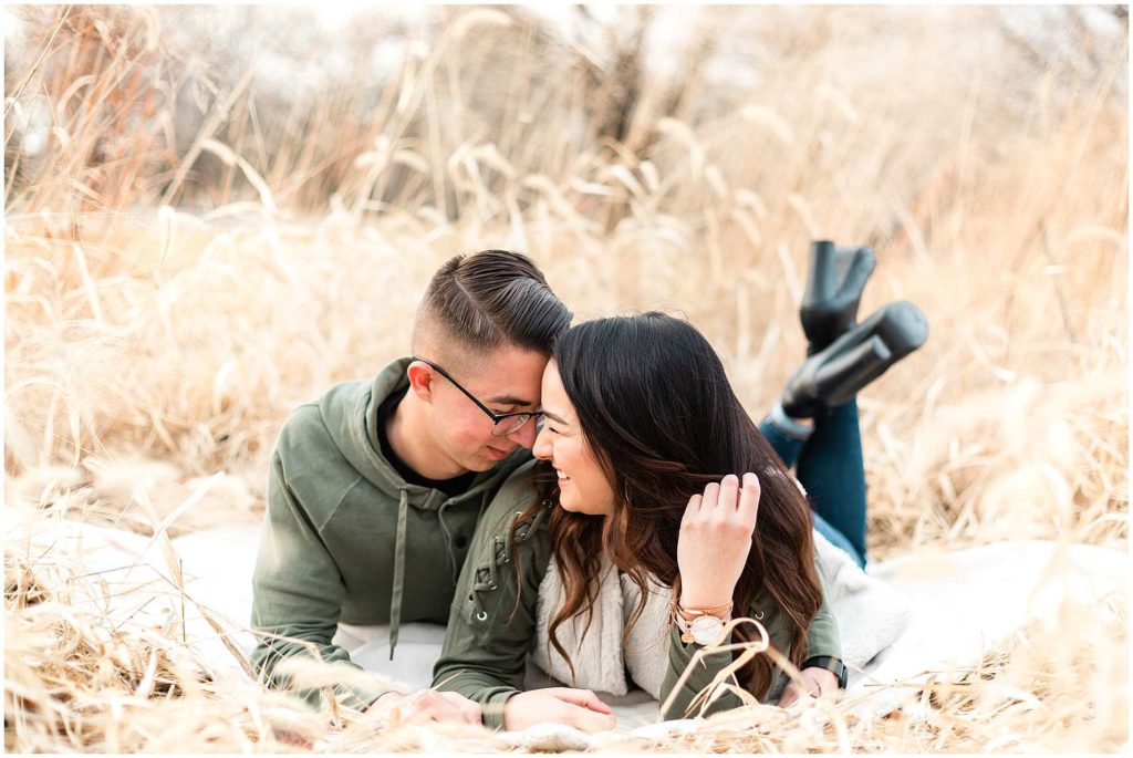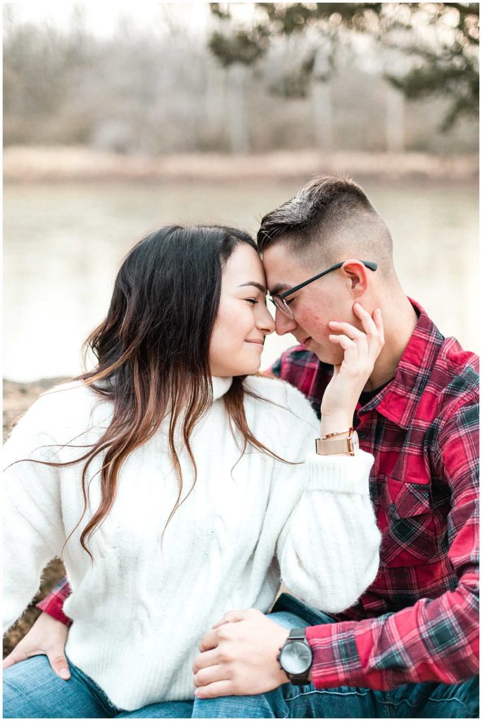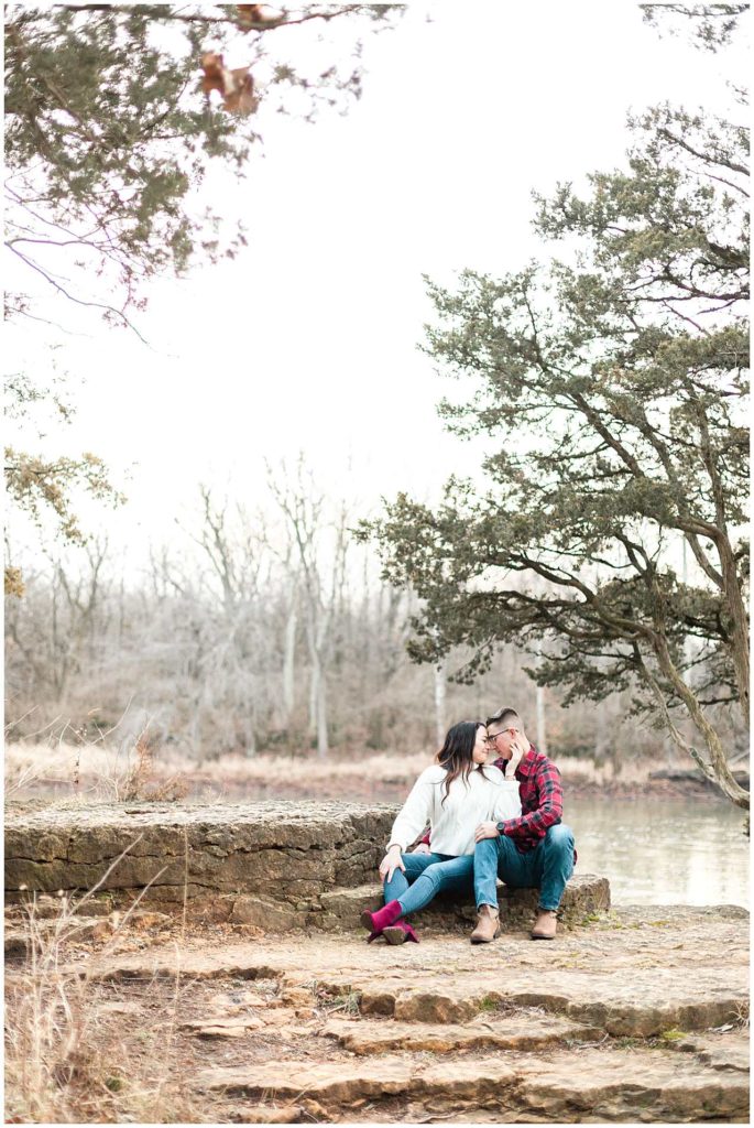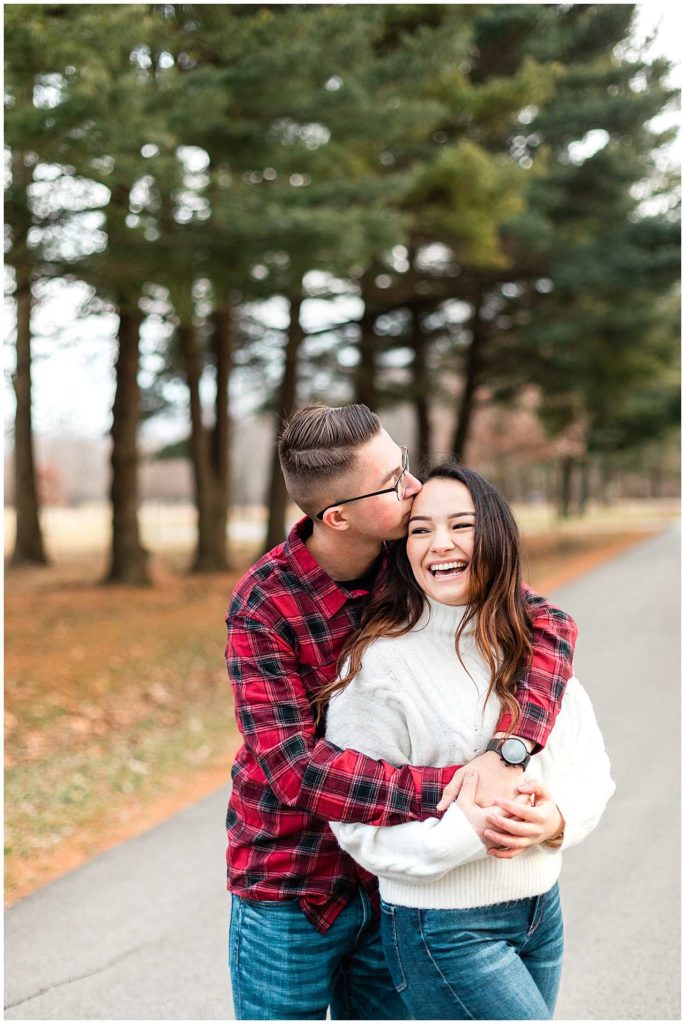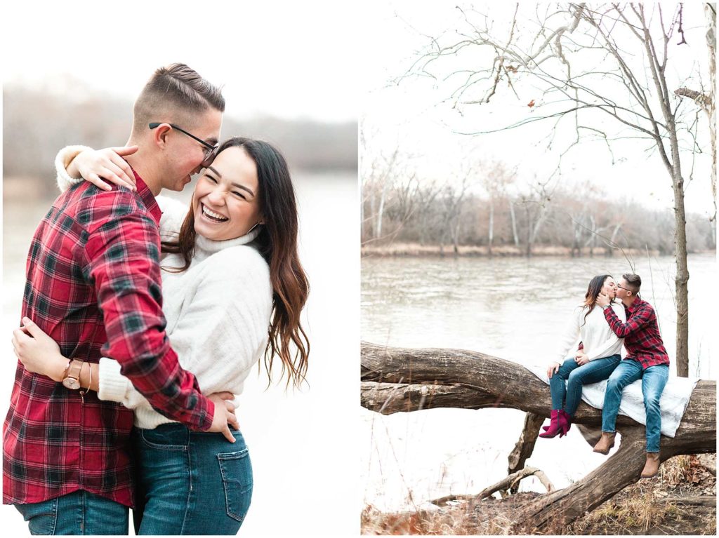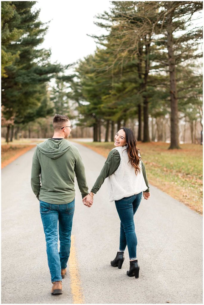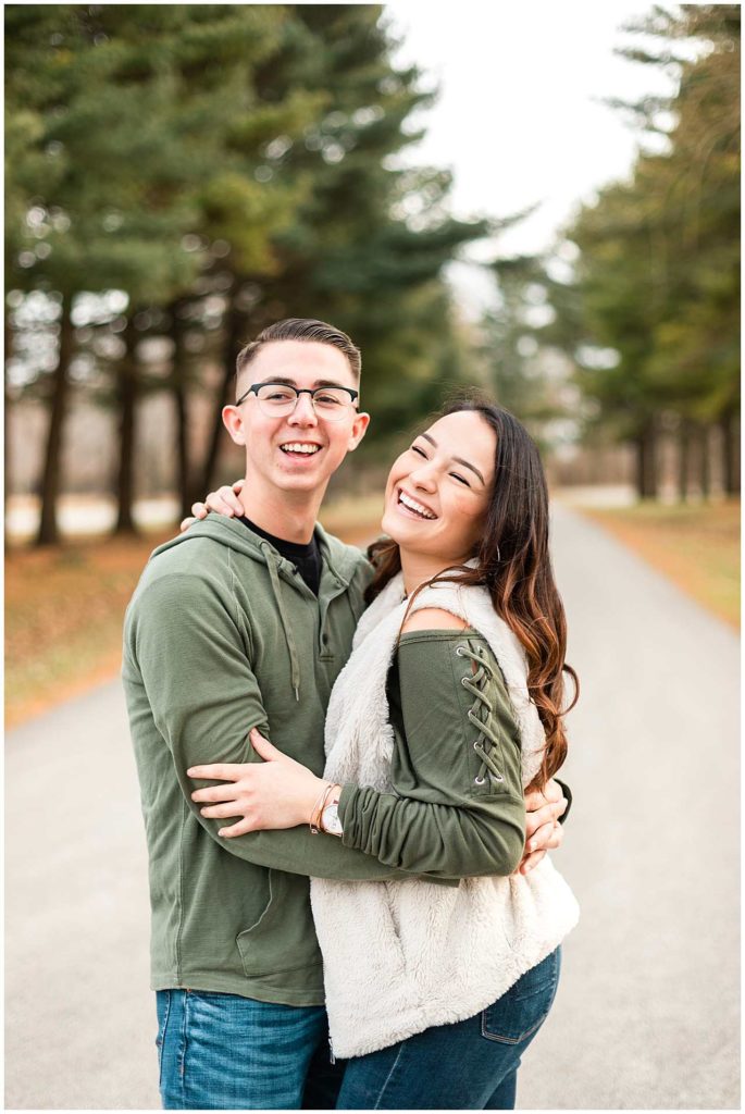Olivia was one of my very first friends! We grew up being neighbors, and I absolutely loved getting to photograph her and Steven! Especially during the winter months, Kankakee River State Park is one of my very favorite engagement photo locations in Kankakee County. These trees stay green all year round, and if you know me, you know I love color and vibrancy in my photos so the green is wonderful! 🙂