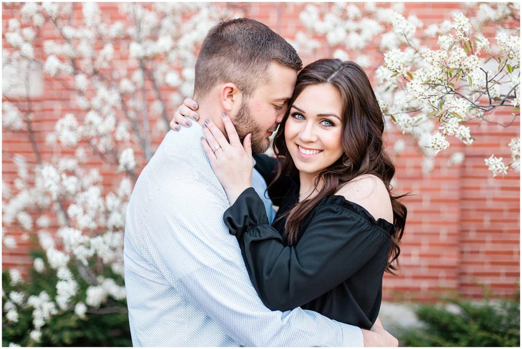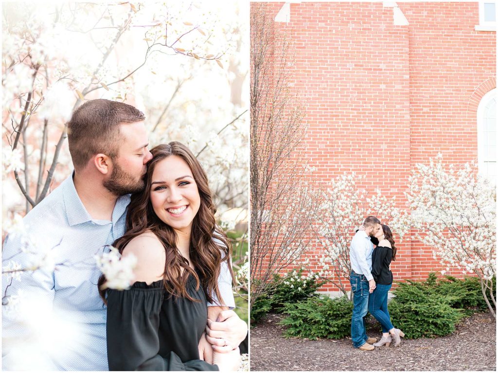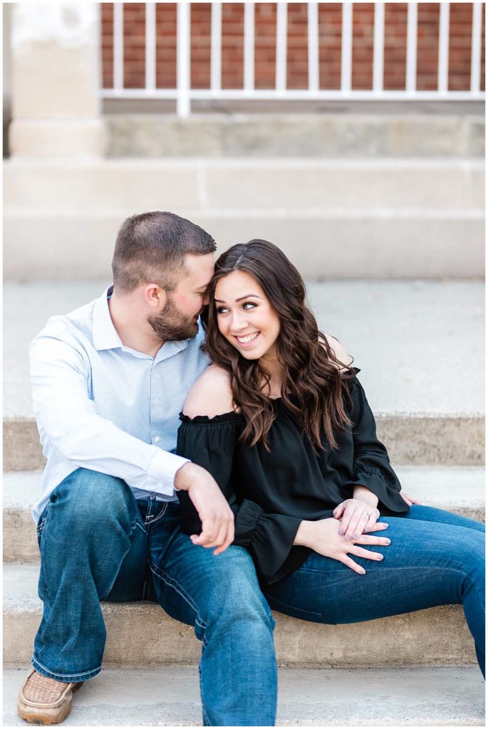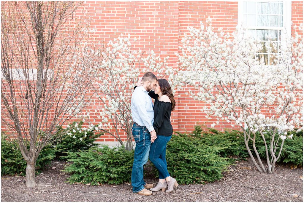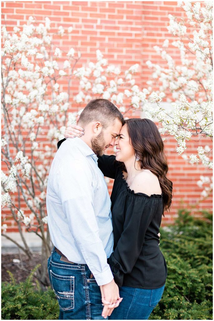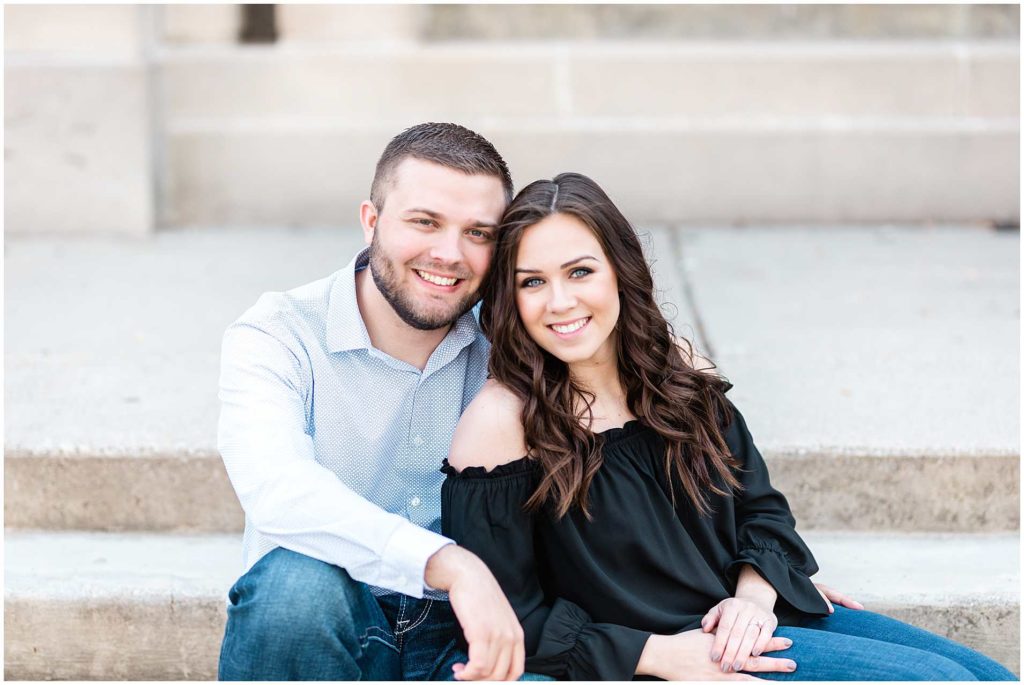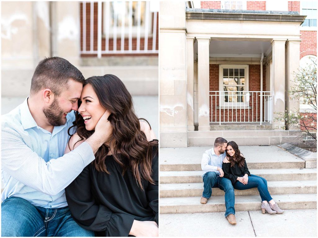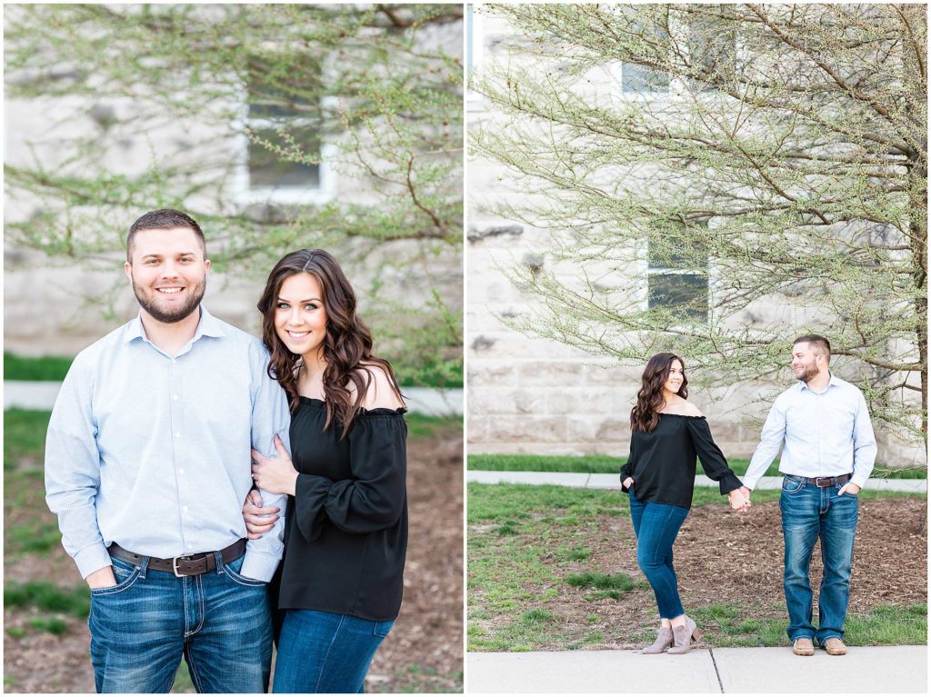 I just LOVE these two!! Since they met at Illinois State University, it only made sense for us to start their engagement session on ISU’s campus. This campus is one of my favorite locations for Central IL engagement photos and absolutely one of my favorites in Bloomington!