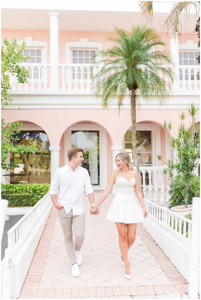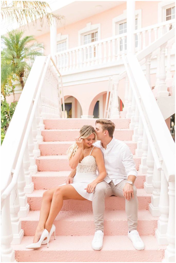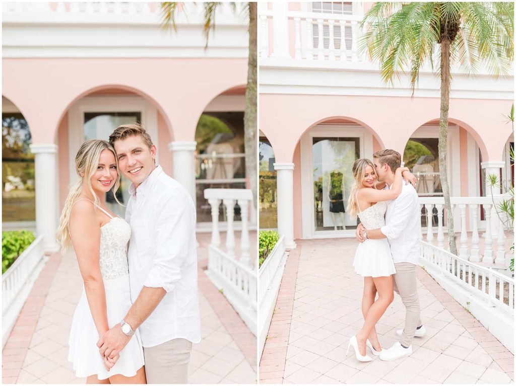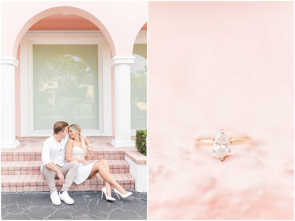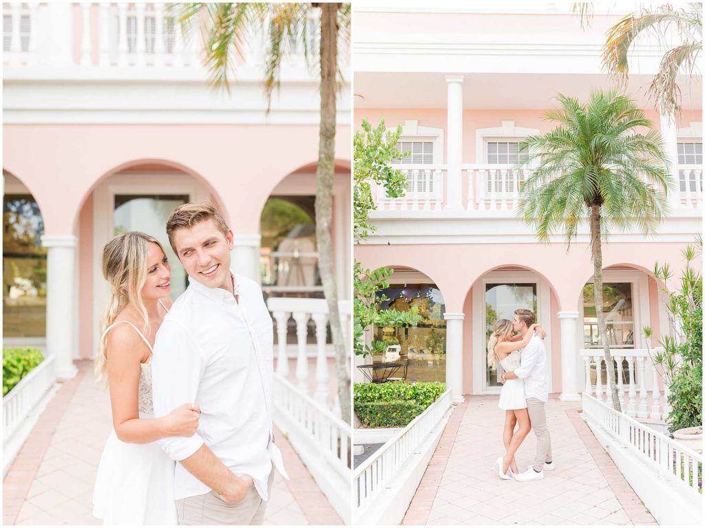 Despite the on and off rain that happens in Florida in the summer, we got THE most perfect night for their session, and I couldn’t be more obsessed with their photos. We began their session in Downtown Naples on Third Street in front of the cutest pink (ahhhh!) building, and then we headed to Naples Beach for the dreamiest sunset!