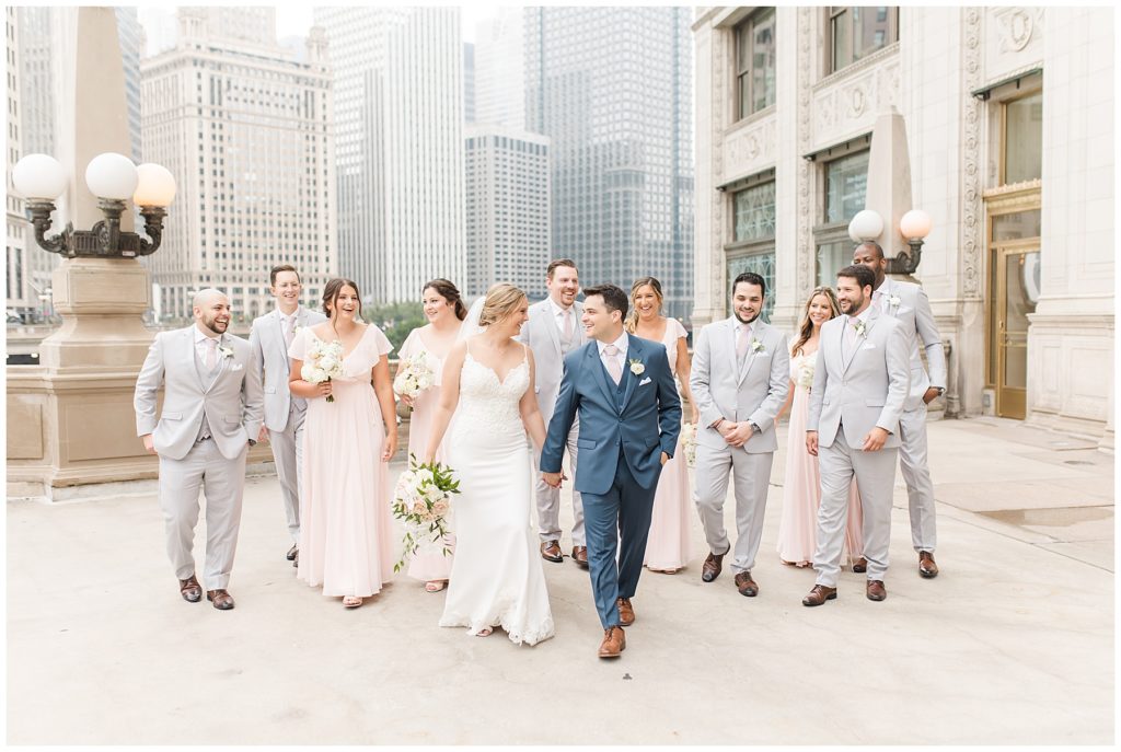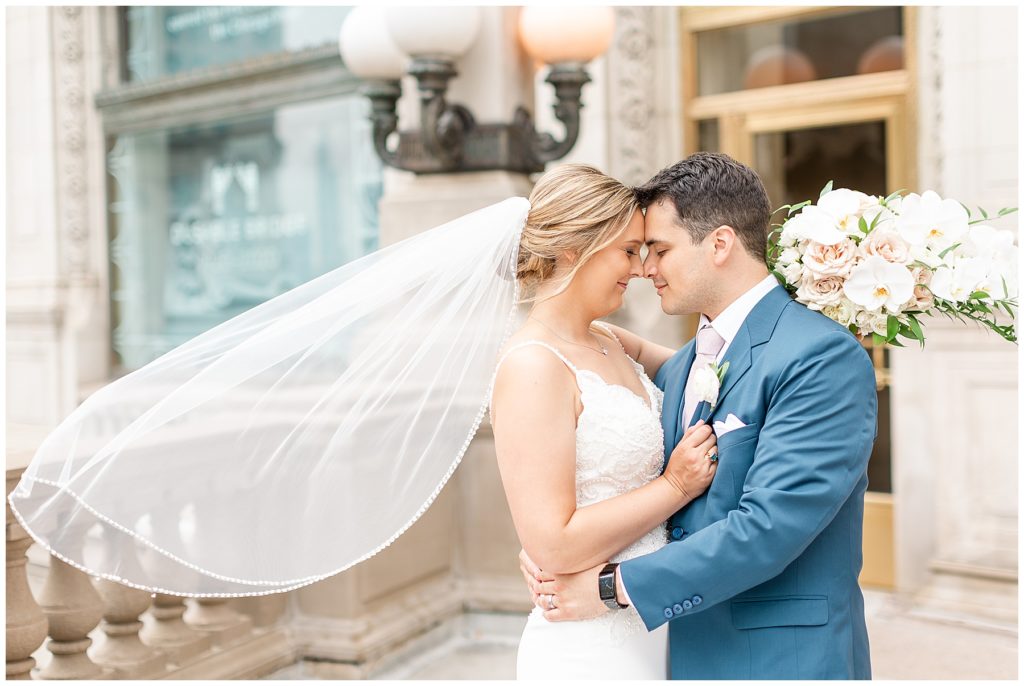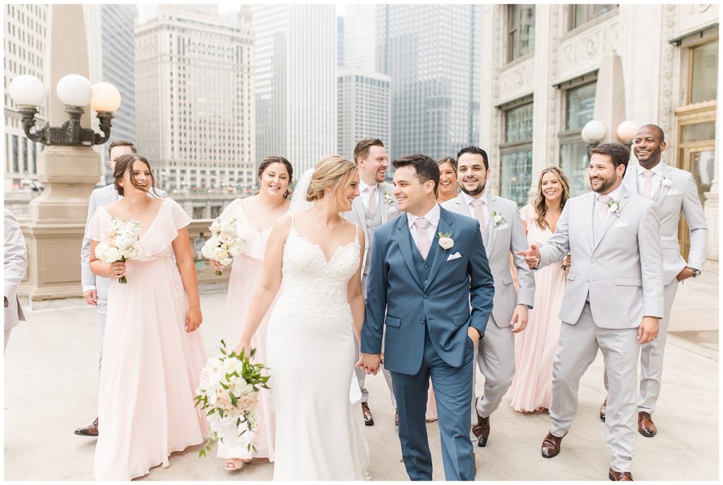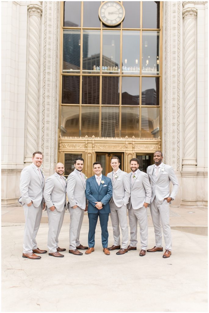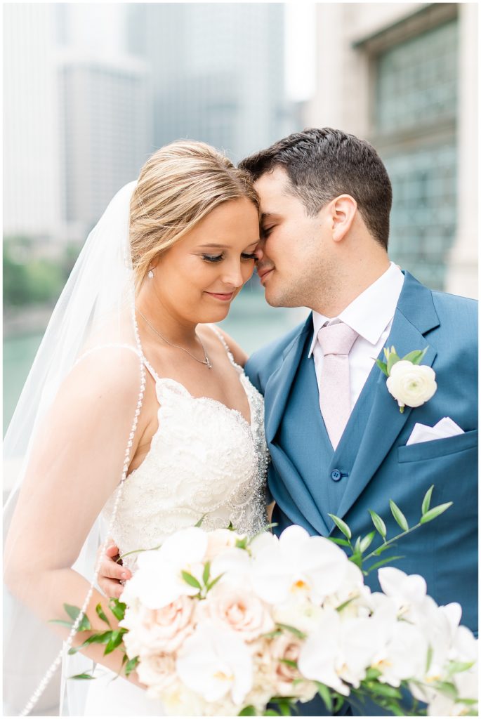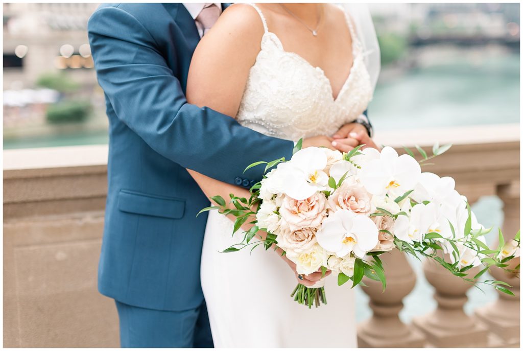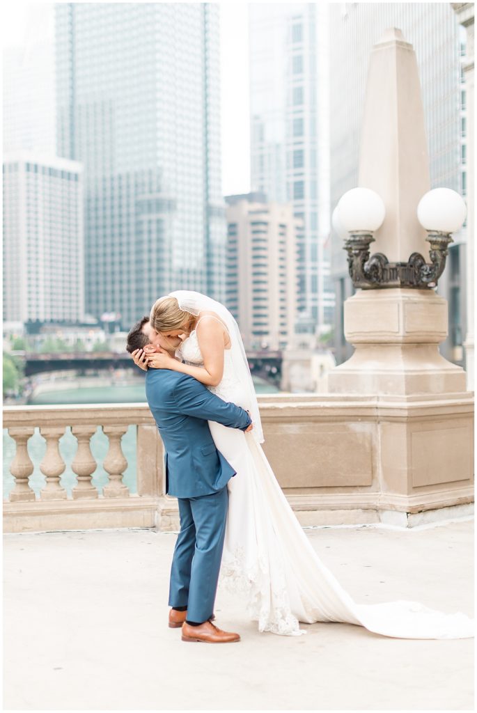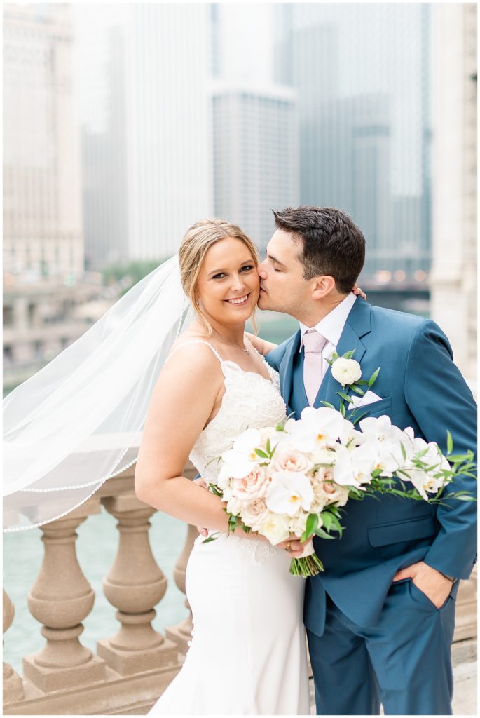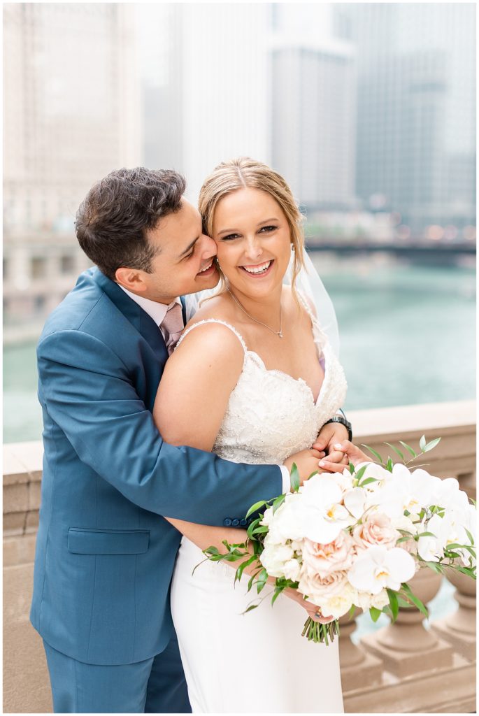 For portraits, we ended up at one of my absolute favorite downtown Chicago locations- The Wrigley Building. This location is perfect for a classy, elegant couple with neutral backgrounds and a glimpse of the river 🙂 I just love it!!