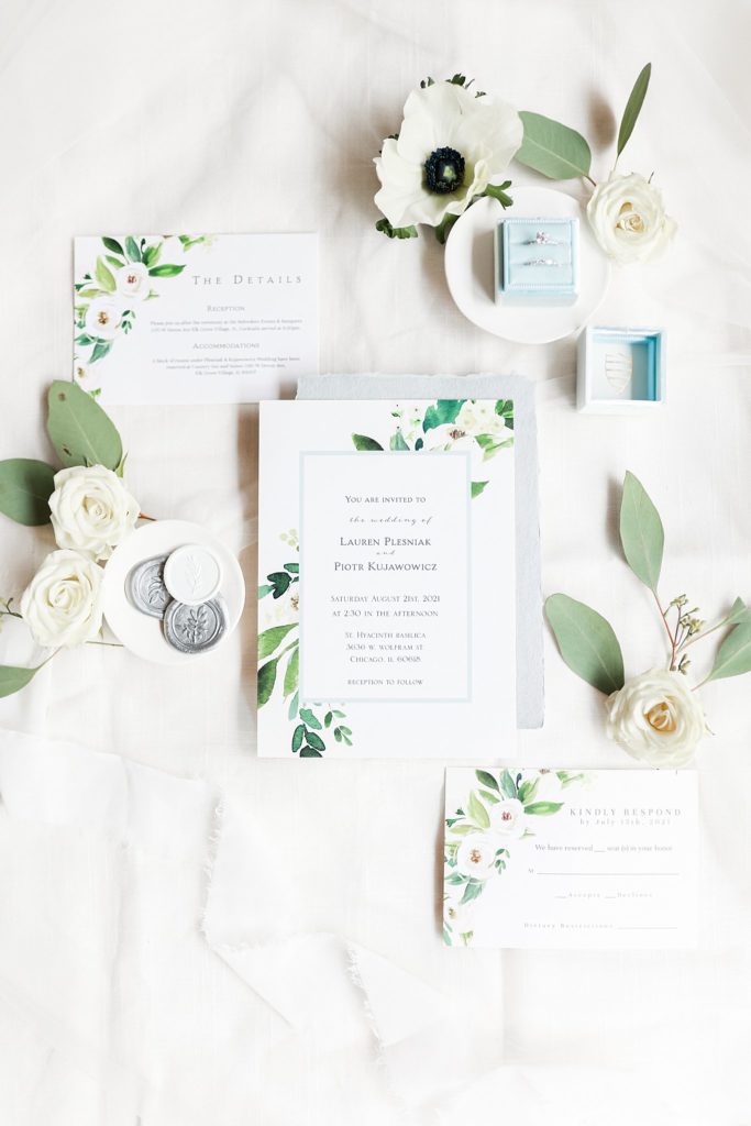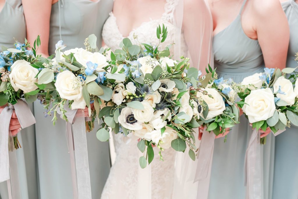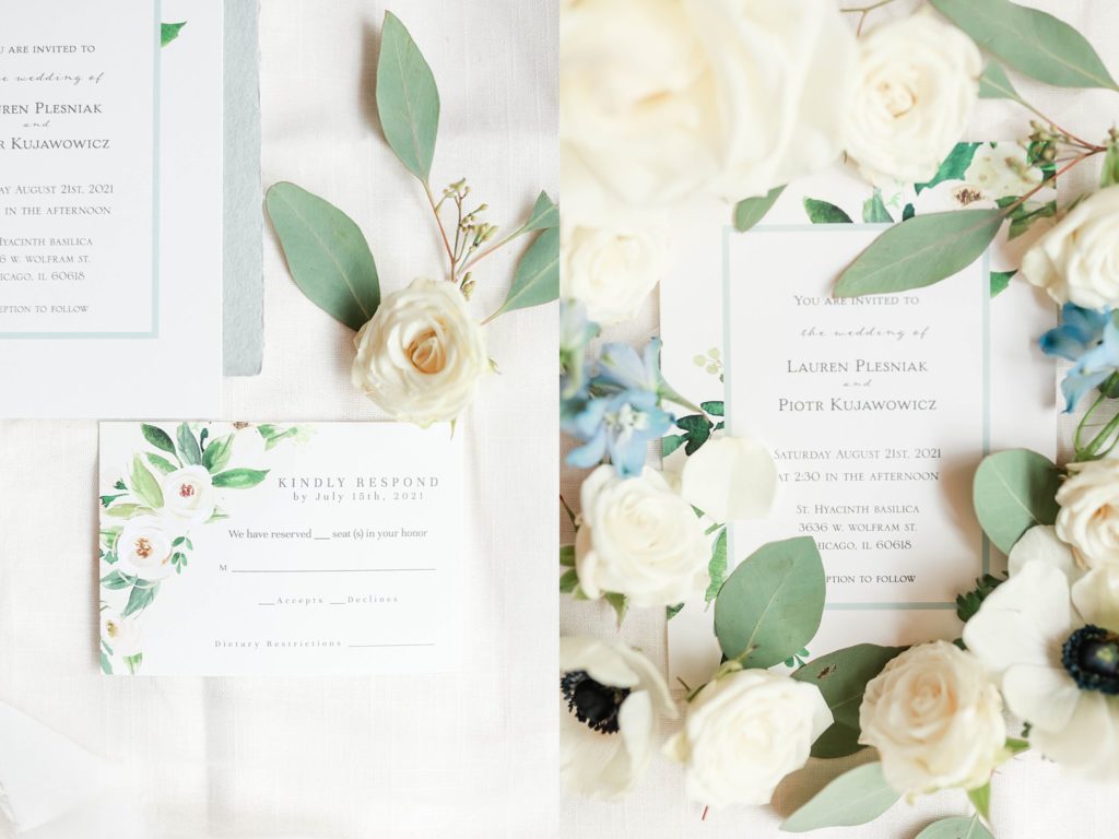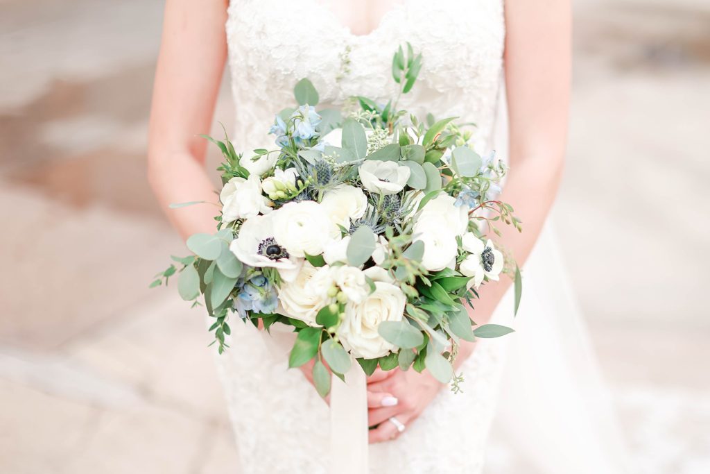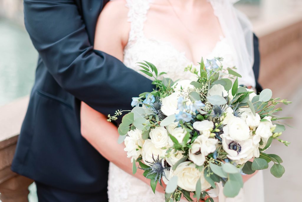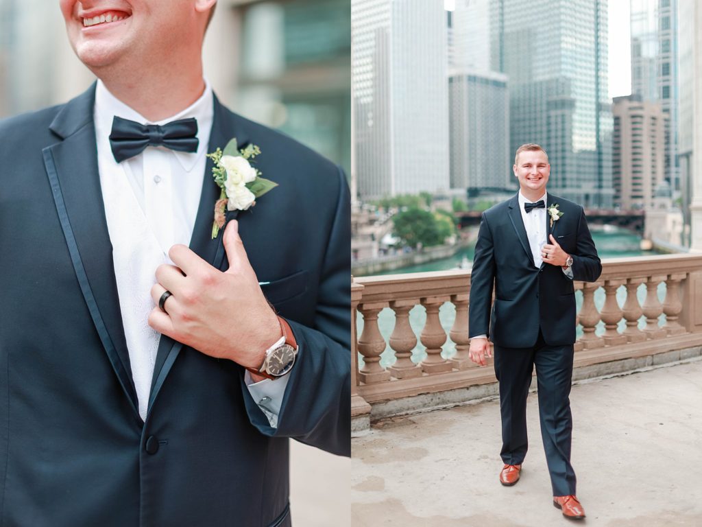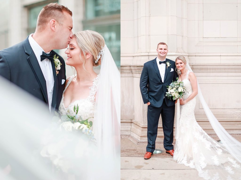 Hearing all about Lauren’s dream wedding had excited every time we got to chat! The dusty blue & navy color palette, dreamy, garden inspired florals, and pure elegant touch of downtown Chicago portraits made for a picture-perfect wedding day that I am just obsessed with! If you’ve looked through my blog posts before, you probably recognize this portrait location, the Wrigley Building. This location is a super popular one for Chicago wedding photographers, and I’m totally included in that-I love it!