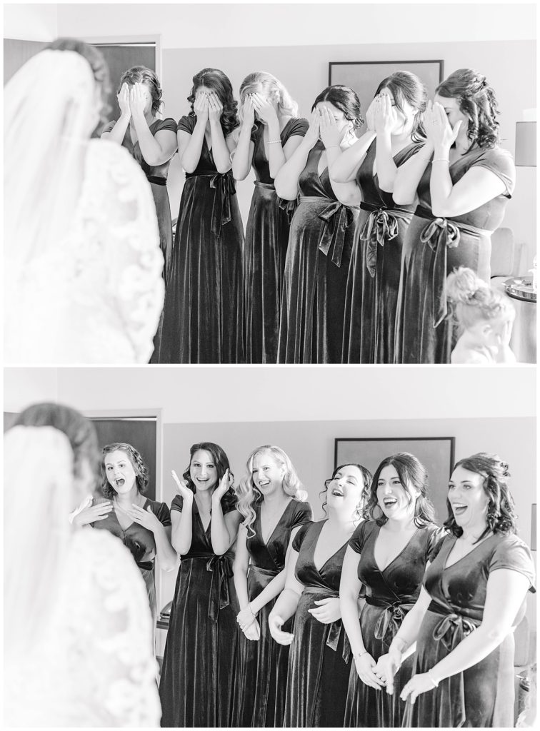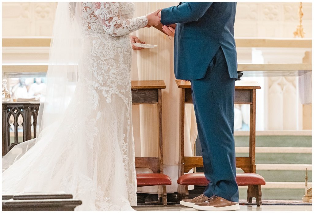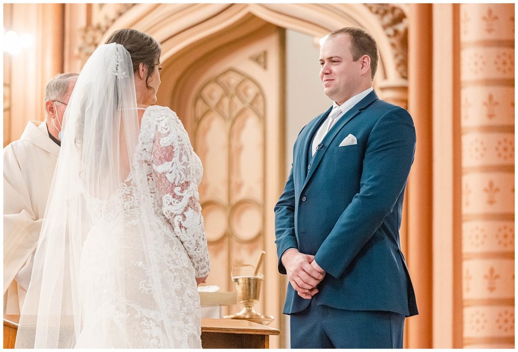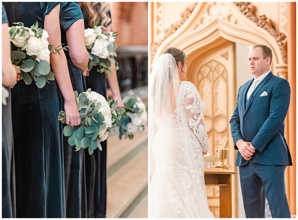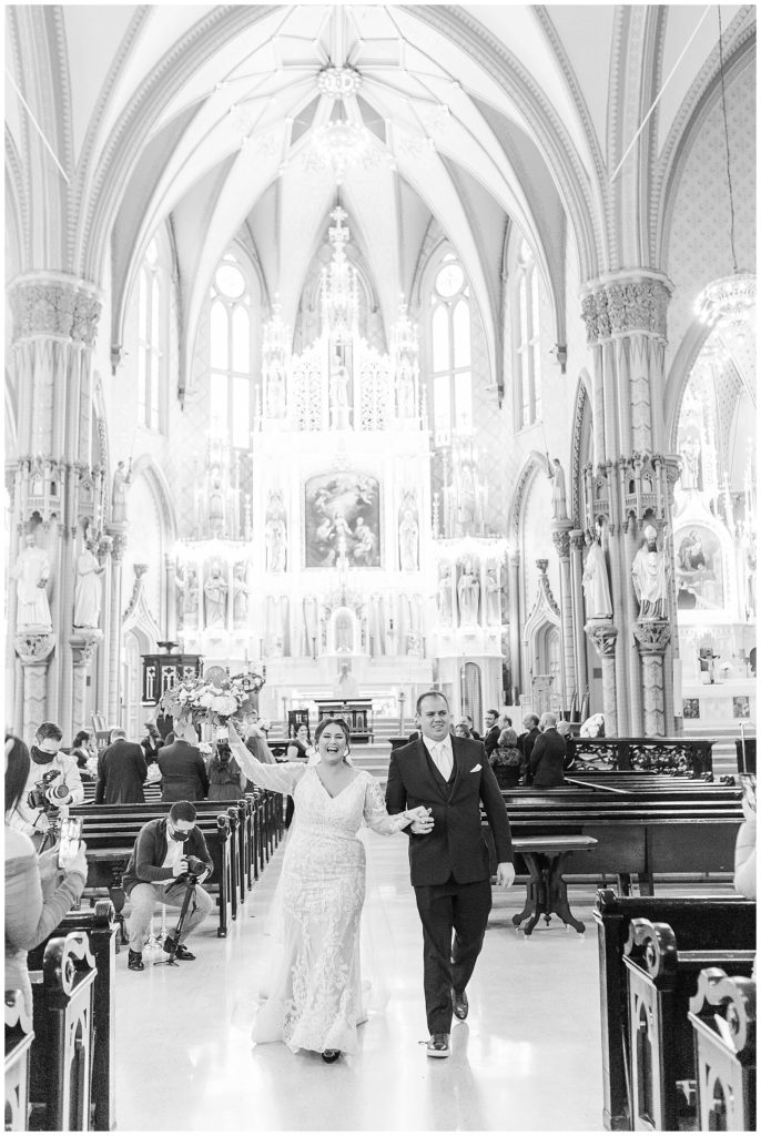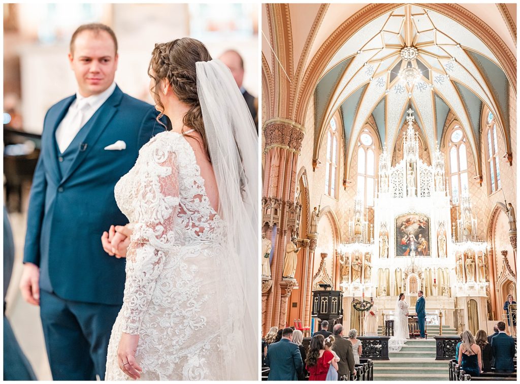 We started the day getting ready at the Crowne Plaza, where I got to see (and photograph) Maddie getting her hair and makeup done and get into her dress, surrounded by her best friends. From there to the gorgeous ceremony at Holy Family Church, the day just continued to get better! Seeing Maddie walk down the aisle with her gorgeous vein and train with the entire cathedral in the background…a dream!!