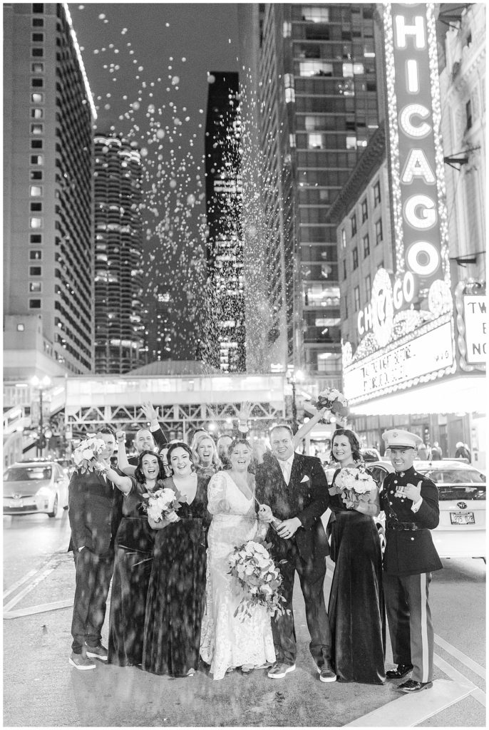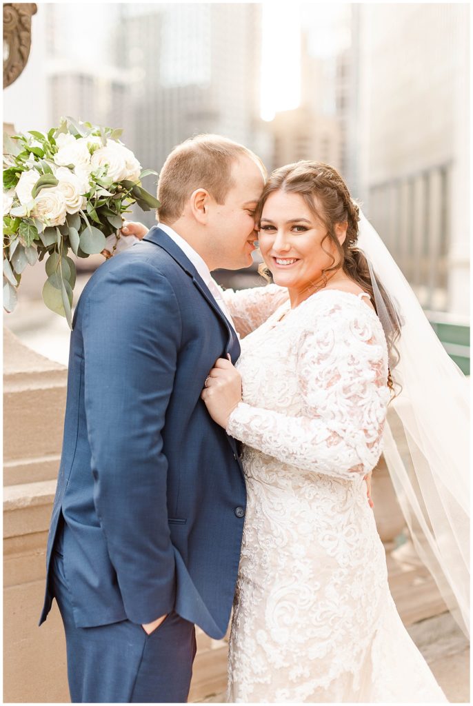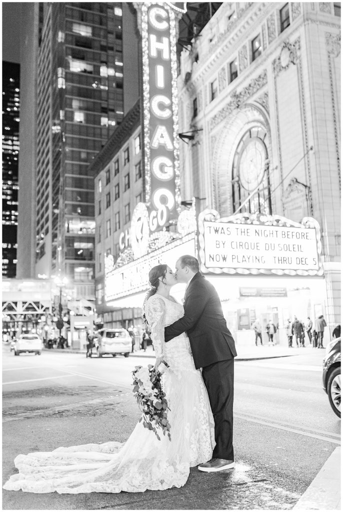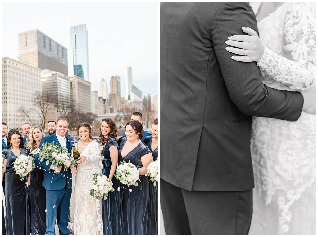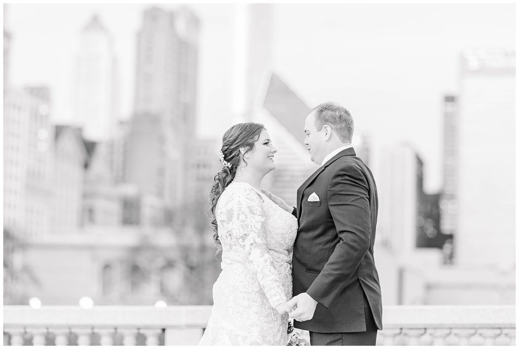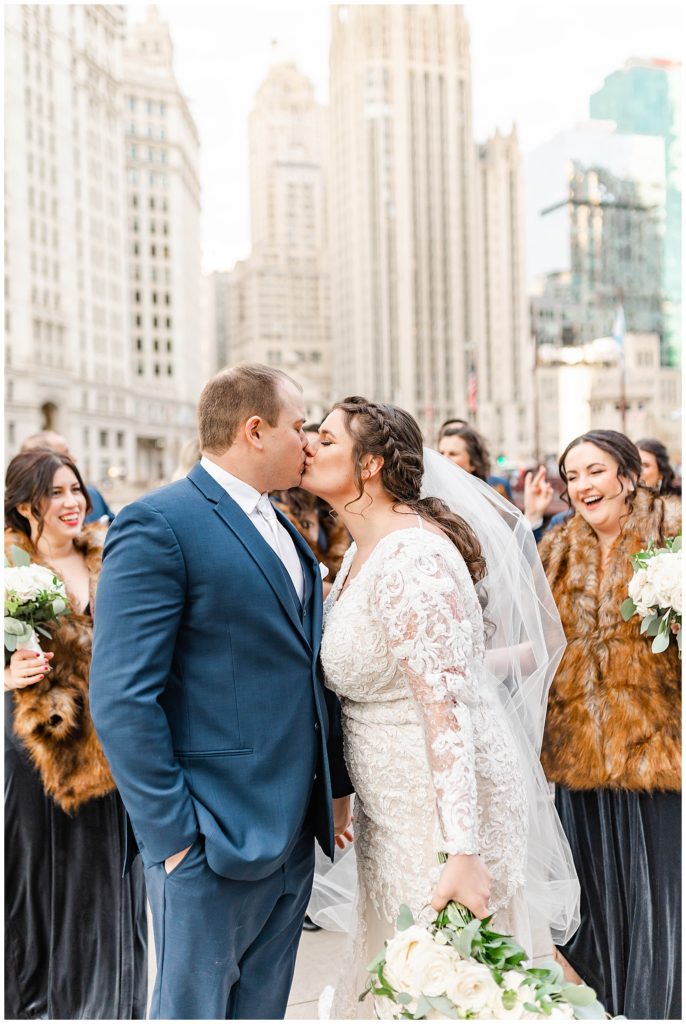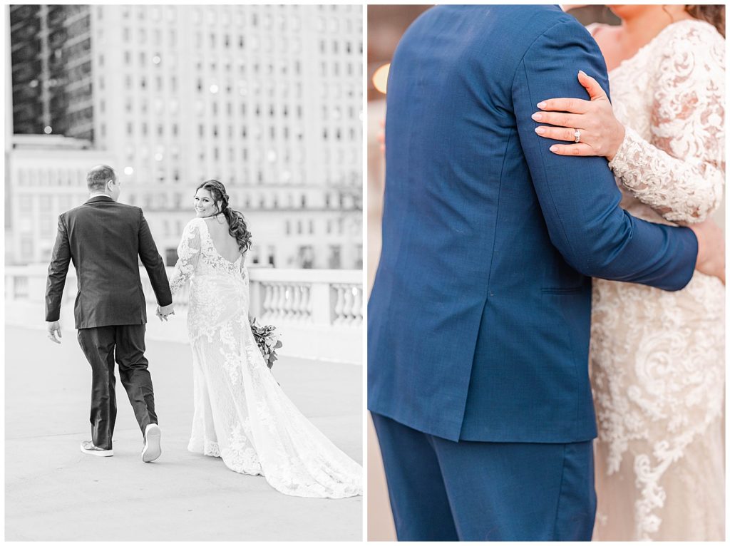 After they renewed their vows during the ceremony, we headed out for portraits around downtown, making stops at some of my favorite places: The Wrigley Building, LondonHouse, Grant Park, and the Chicago Theater. After that, we arrived at their stunning wedding venue, Bridgeport Art Center. This venue, paired with the gorgeous decor, was a photographer (and bride)’s dream come true! I think I photographed just about every inch of the space because it was too dang beautiful 😉