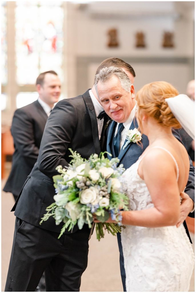 We started the day with Tiffany and her girls at her parents’ house in Tinley Park. The getting ready process was seamless and so fun. Tiffany’s details…oh my goodness! I loved styling and photographing them. After getting ready, we all headed to their ceremony in their beautiful church.