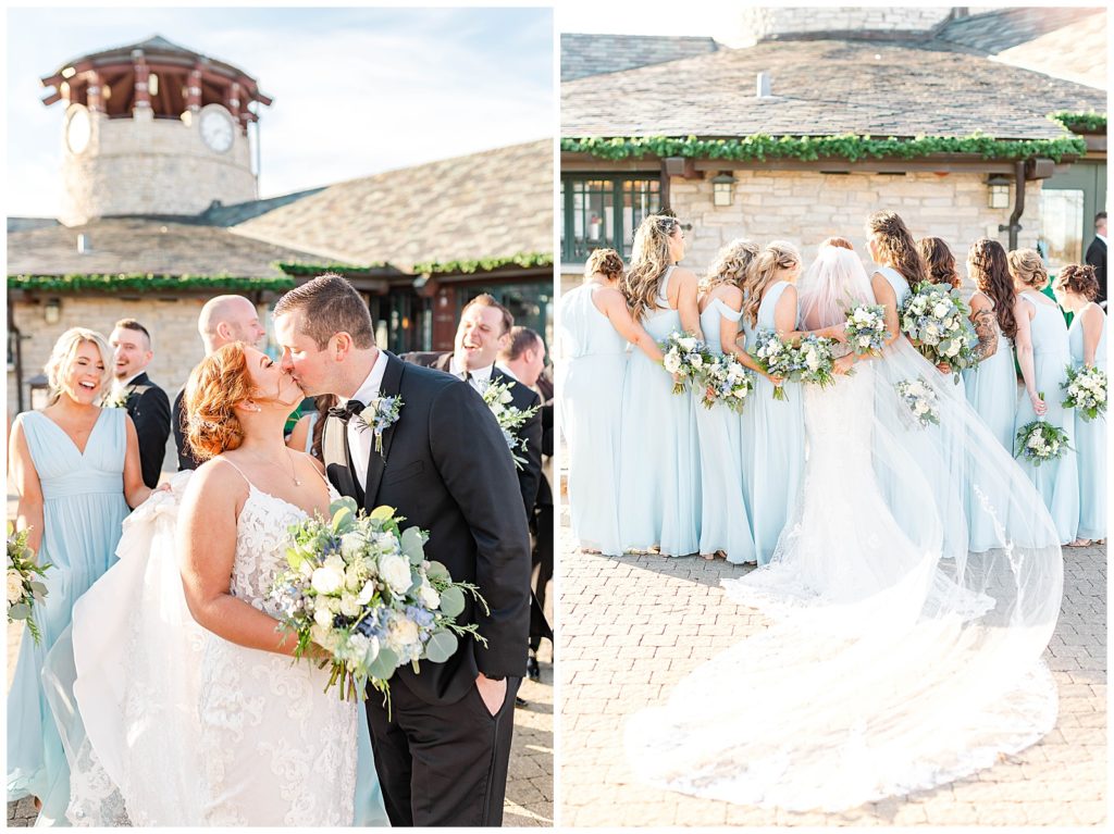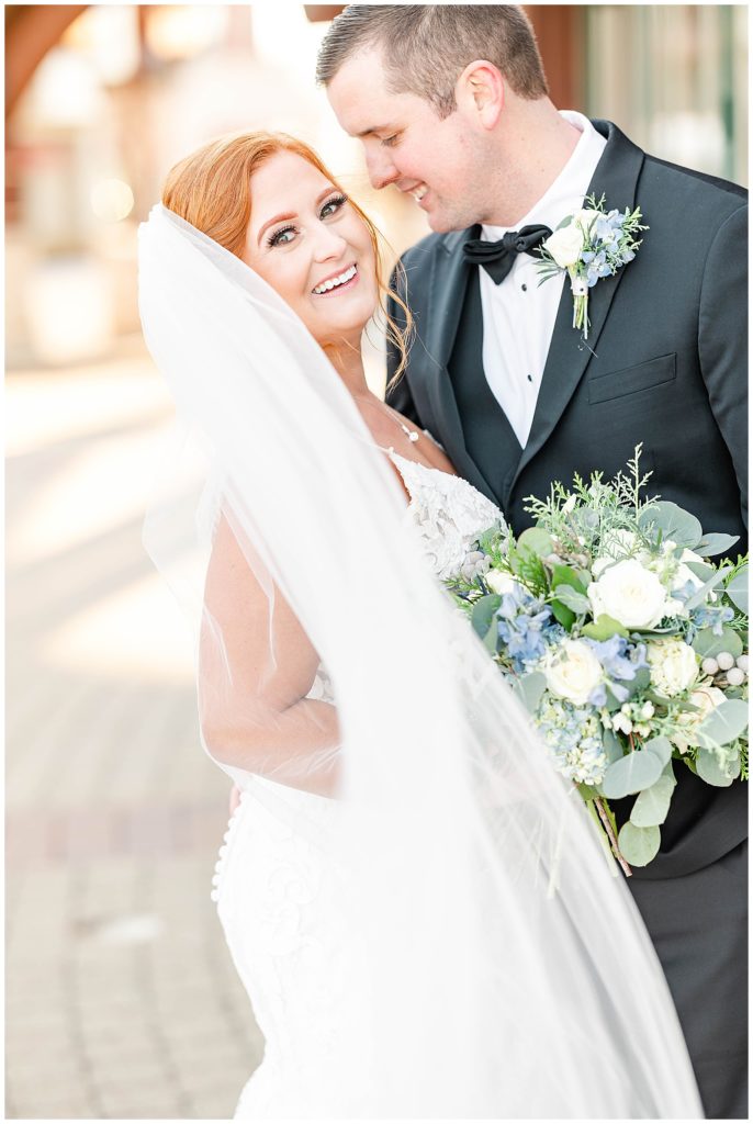 For portraits (in the freezing cold that you can’t tell was the freezing cold 🙂 ), we headed to downtown Tinley Park by the decorated train station. It was so beautiful, and I loved what we were able to capture there! Lastly, for their reception, we celebrated at Chicago Gaelic Park. It was decorated so beautifully and gave off gorgeous elegant, Christmas vibes.