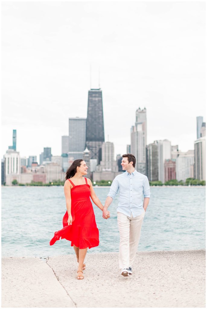 Oh my goodness, I just adore these two, these locations, and everything about this session!! Rachel and David’s engagement session took place at 2 of my favorite downtown Chicago locations- Museum Campus + North Avenue Beach. They showed up in amazing outfits that were incredibly great to photograph, and getting them into each pose was a dream!