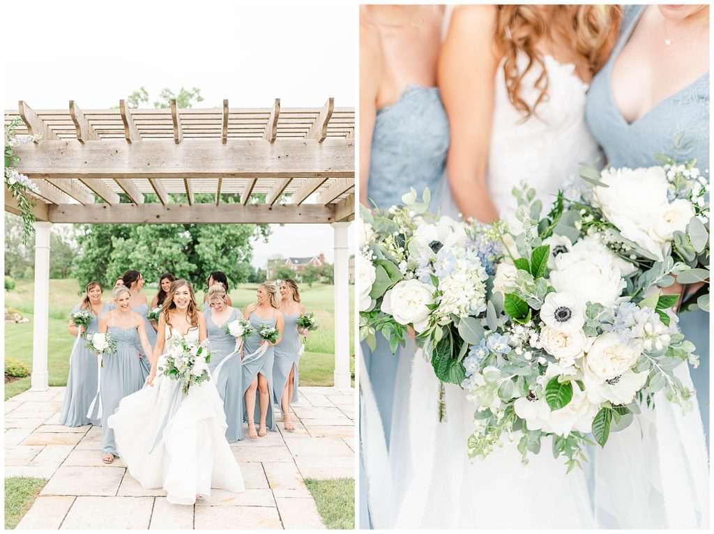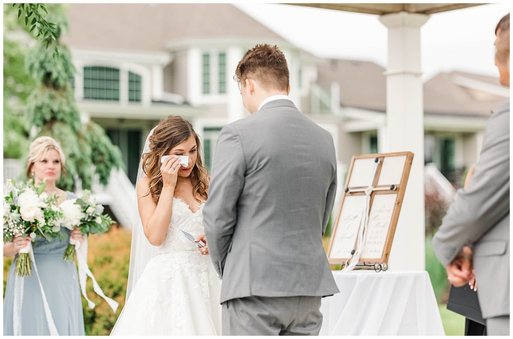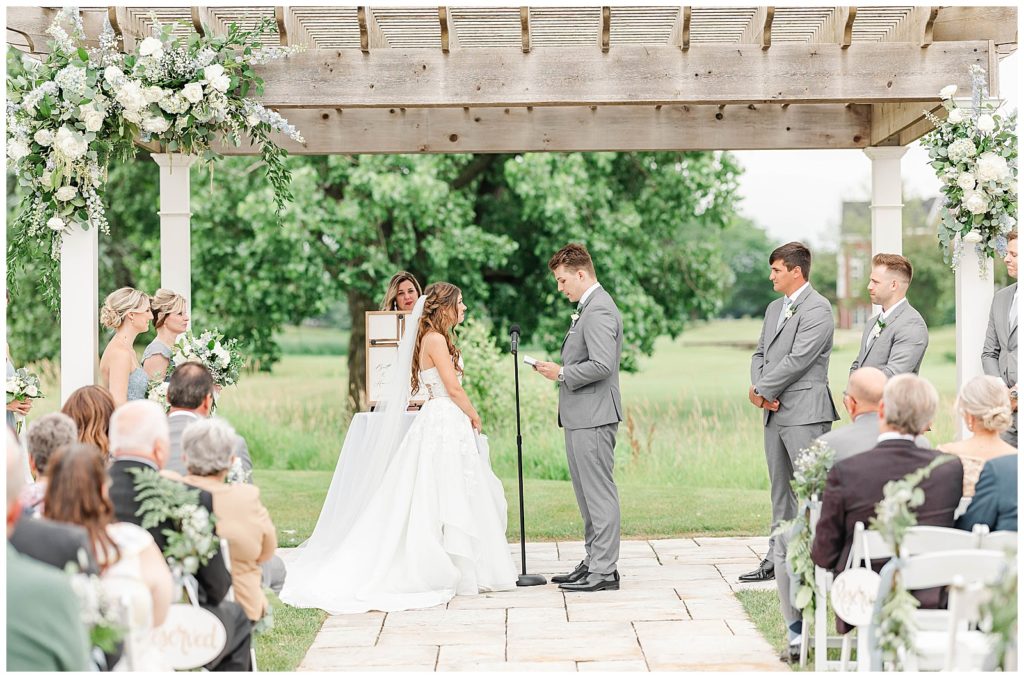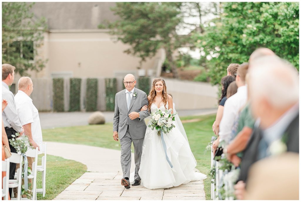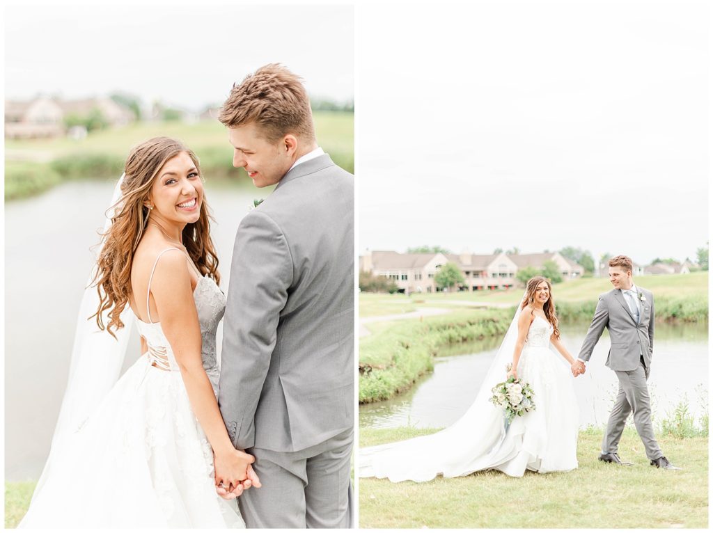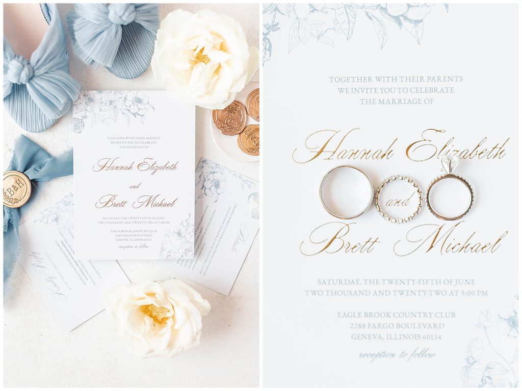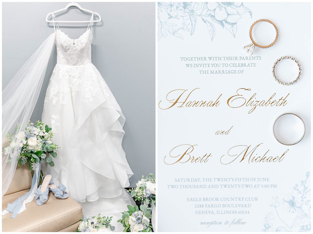 Their ceremony and reception both took place at Eaglebrook Country Club in Geneva, Illinois. This country club is so special, compared to most other clubs I’ve photographed at, because the staff was incredible! The venue coordinator, Taylor, was so helpful to both Hannah and Brett and myself throughout the day, which was such a gift. The rain completely held off for everything we needed it to-including the first look, portraits, and their ceremony (literally, as we were walking back inside following after-ceremony portraits, the rain picked up again. How perfectly timed?!?!).