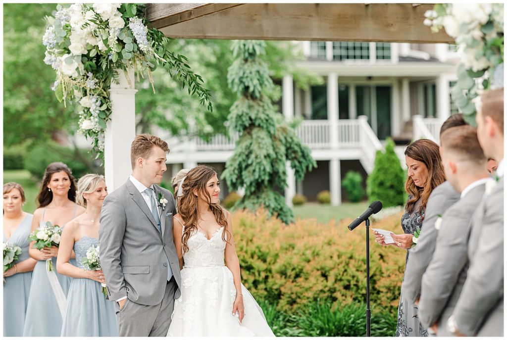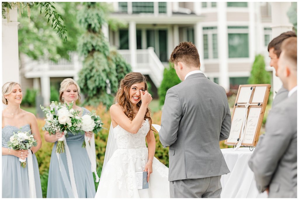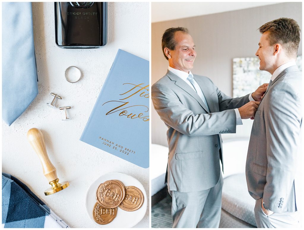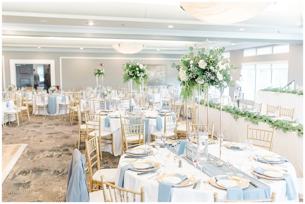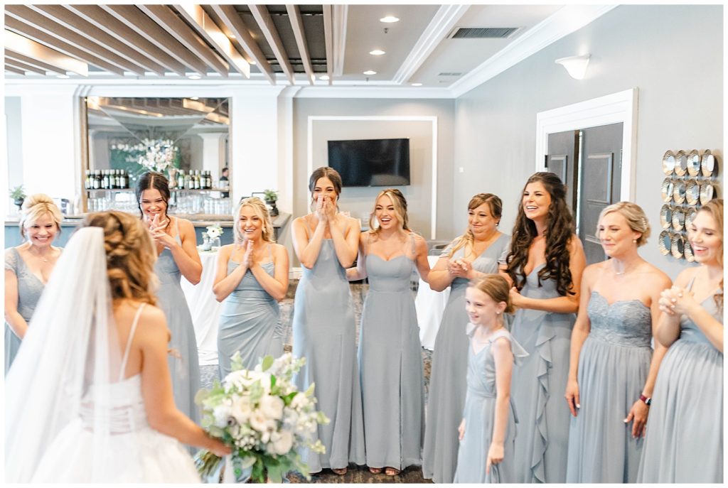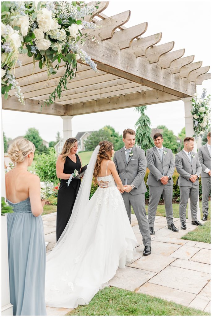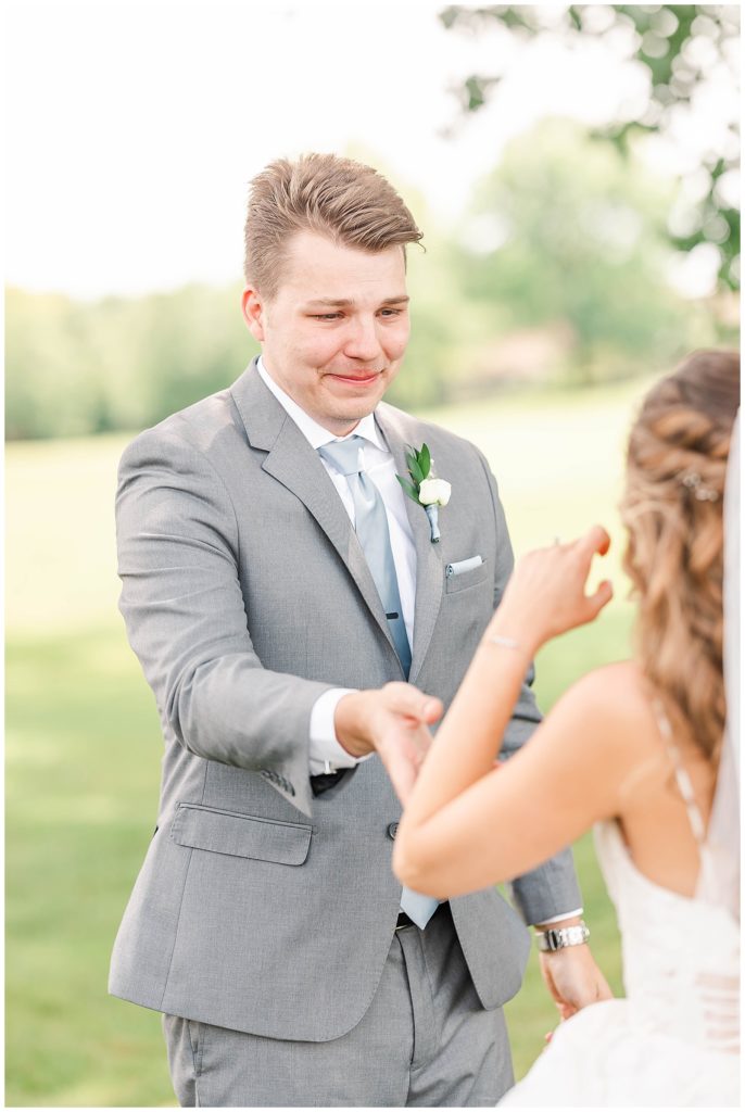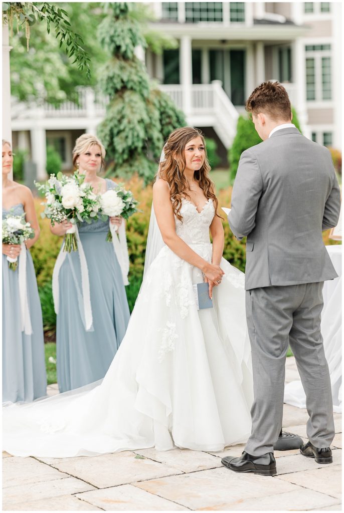 Their ceremony and reception both took place at Eaglebrook Country Club in Geneva, Illinois. This country club is so special, compared to most other clubs I’ve photographed at, because the staff was incredible! The venue coordinator, Taylor, was so helpful to both Hannah and Brett and myself throughout the day, which was such a gift. The rain completely held off for everything we needed it to-including the first look, portraits, and their ceremony (literally, as we were walking back inside following after-ceremony portraits, the rain picked up again. How perfectly timed?!?!).