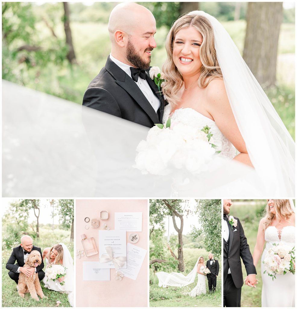 This whole day… *chef’s kiss*!! Katelyn and Anthony (and the star of the show, their pup, Gibby) were so fun at their engagement session last fall, and getting to see and photograph their best day this past weekend was such a dream. Not only did I love their neutral and pink color palette, but I’m obsessing over all of the dreamy photos we captured, how perfect Gibby was when it was his turn for photos, and everything about the day.