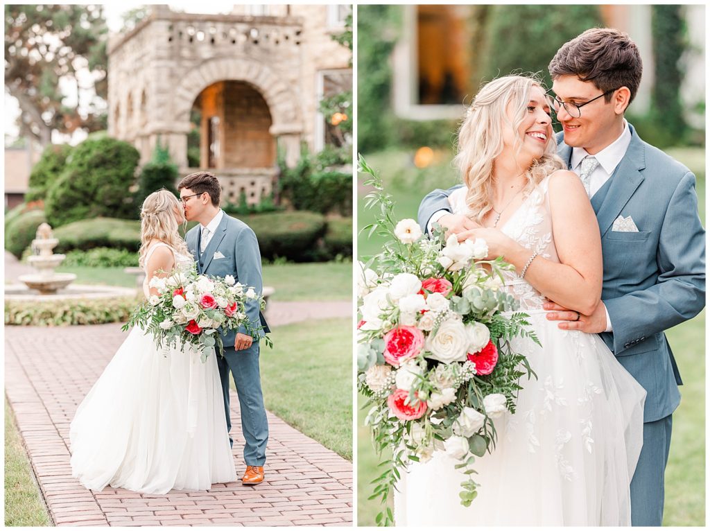 Their ceremony and reception took place at The Patrick Haley Mansion in Joliet which is a hidden gem in the Chicagoland area. The beautiful gardens and always stunning mansion make the portrait options endless, and we truly got so many great photos!