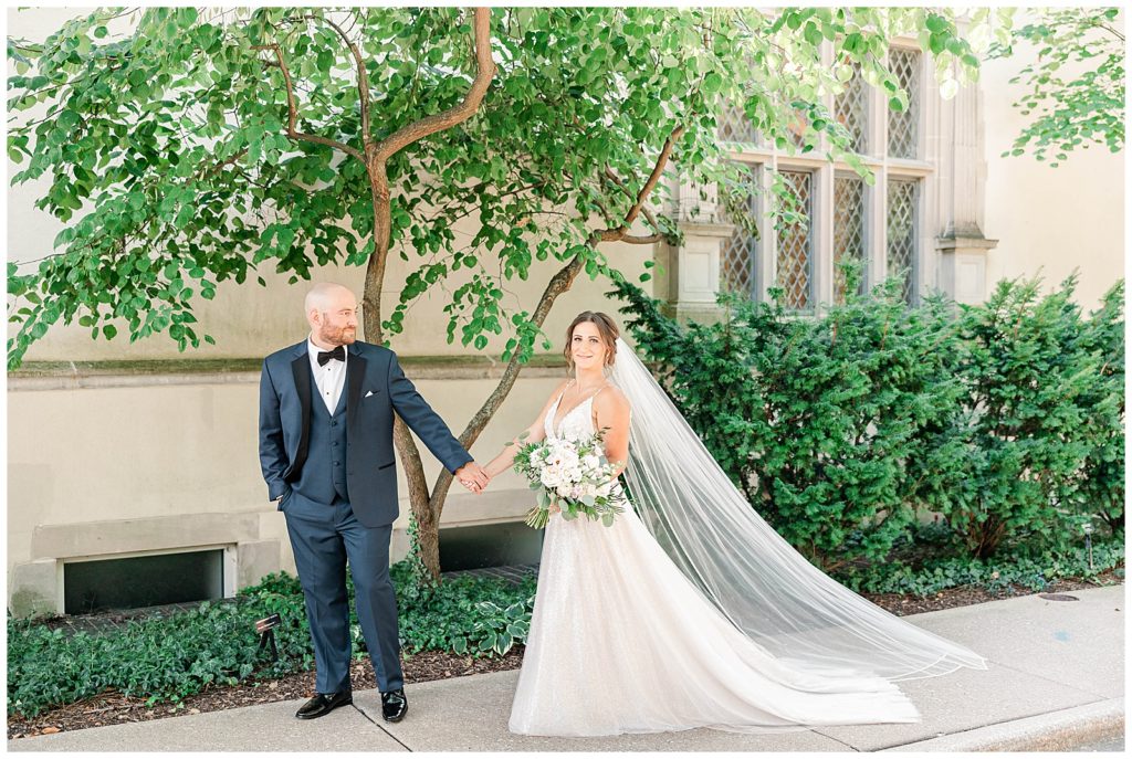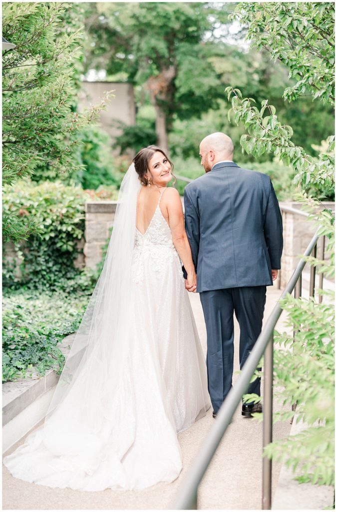 Krystle and Cory!! Saturday was such a great day with these two. They got ready (and had their ceremony & reception) at Hotel Arista, and it was gorgeous! For their first look and portraits, we traveled to Morton Arboretum, where we were able to take photos with the gardens, ivy wall, and this fun, neutral building with amazing architecture!