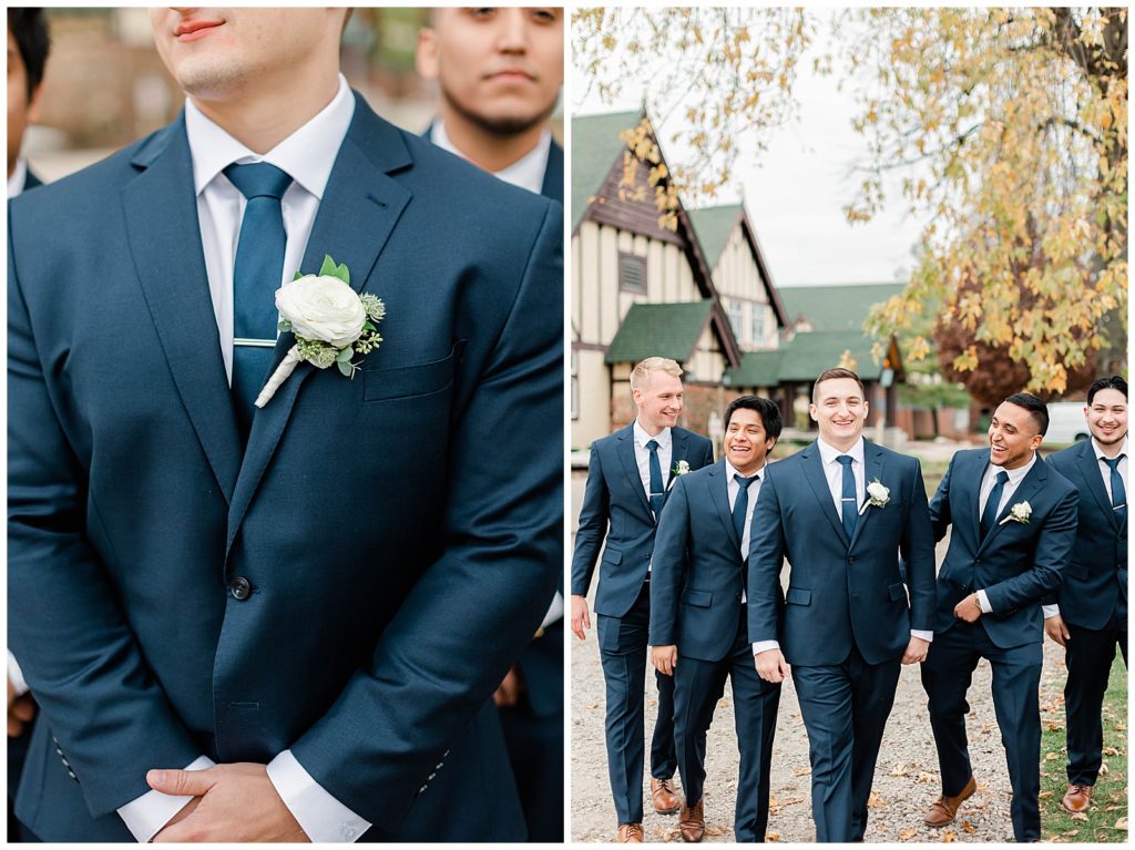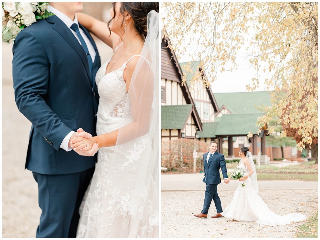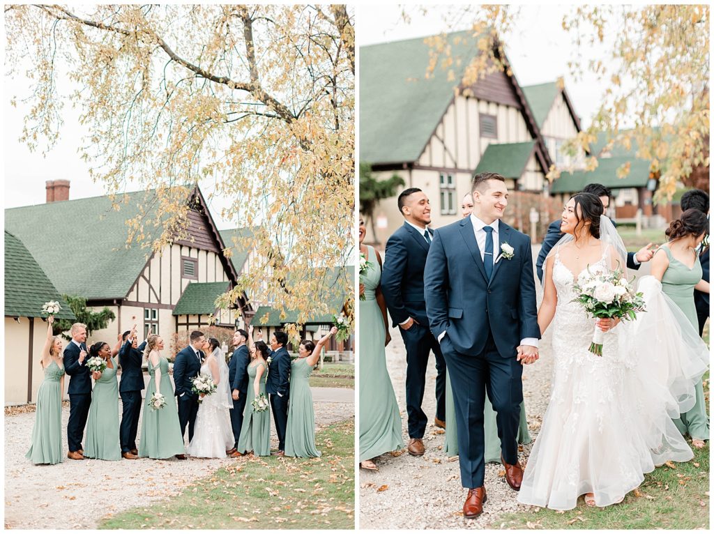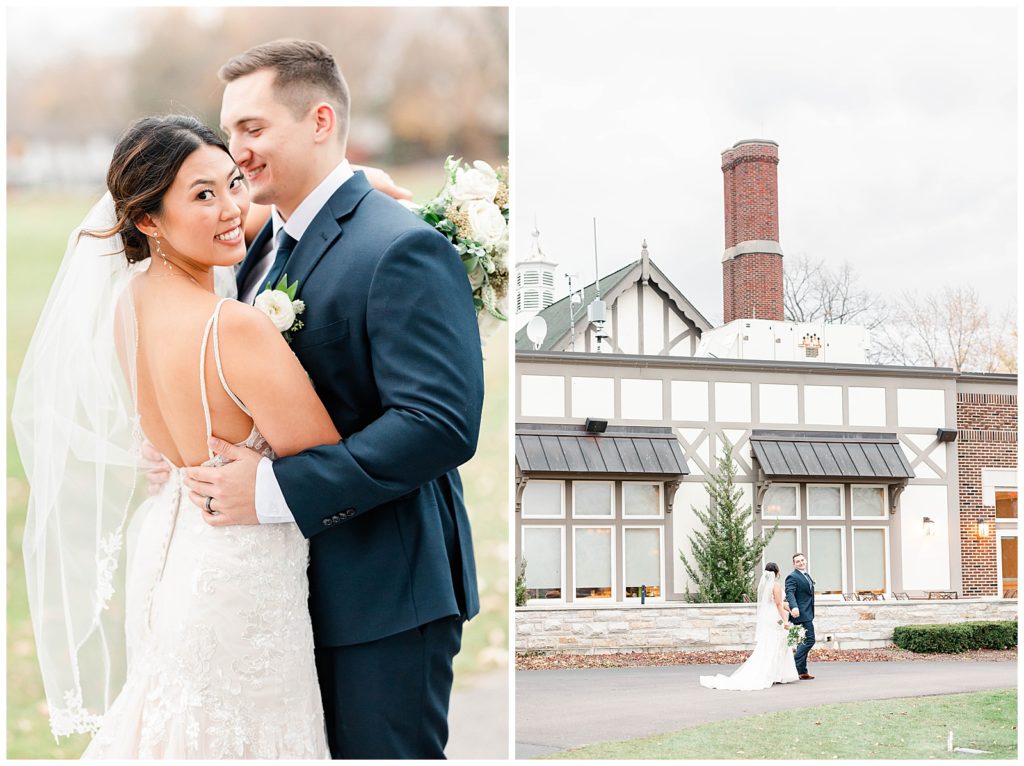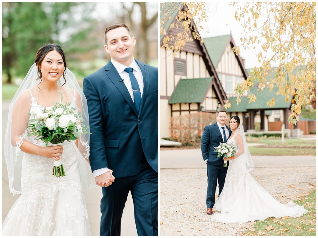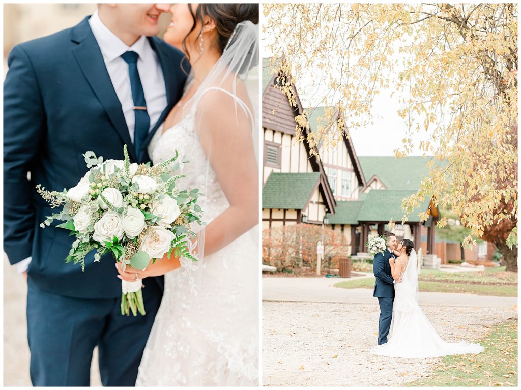 Chevy Chase Country Club is a frequent Chicago suburbs wedding venue that we get the privelage of working at. It’s a beautiful, well light space on its own, but seeing out couples elevate the space into an elegant, pastel colored room is so fun to witness! Somehow, we managed to find a handful of fall-colored trees on the venue grounds, and they worked so beautifully for Mindy and Cody’s wedding portraits.