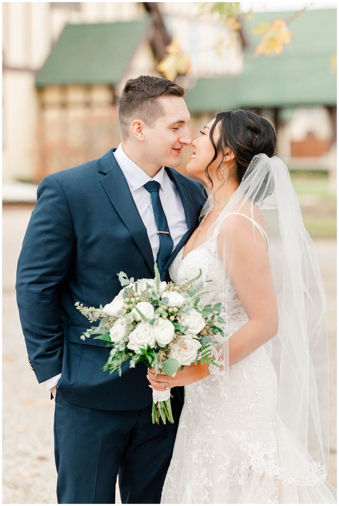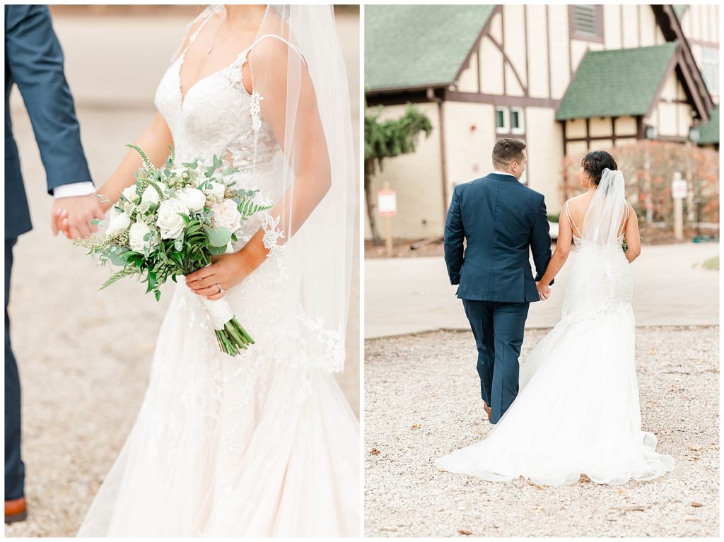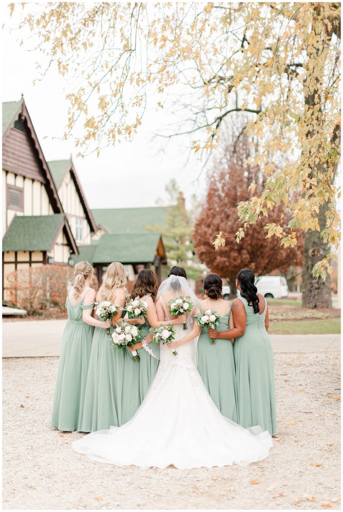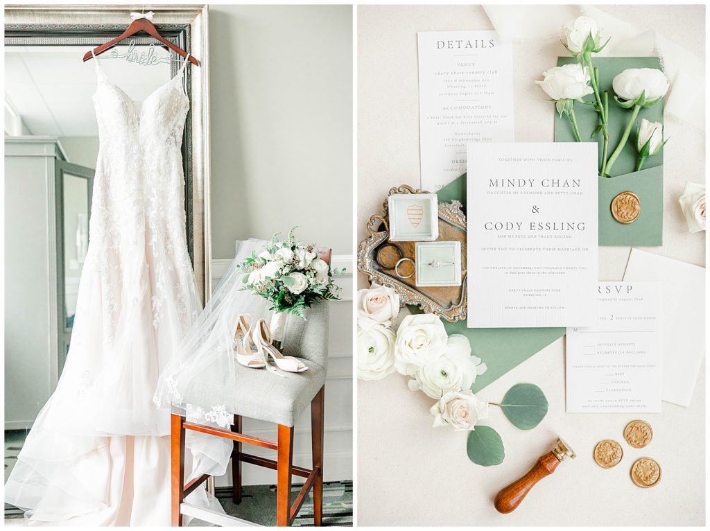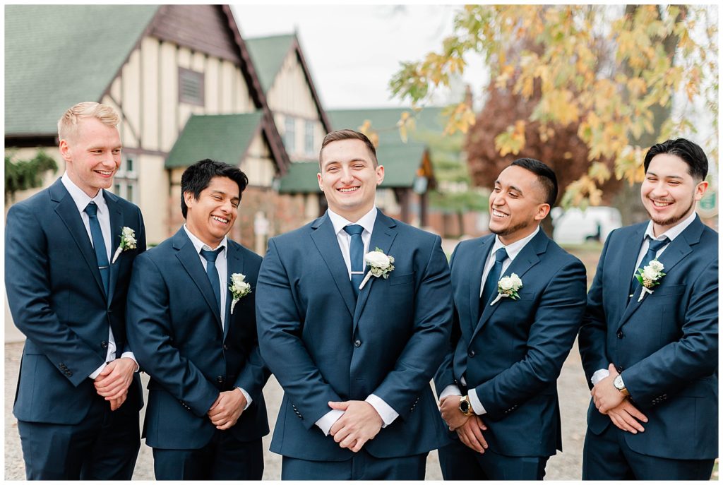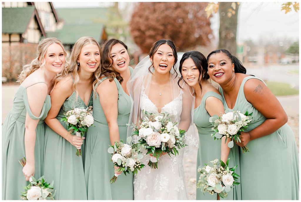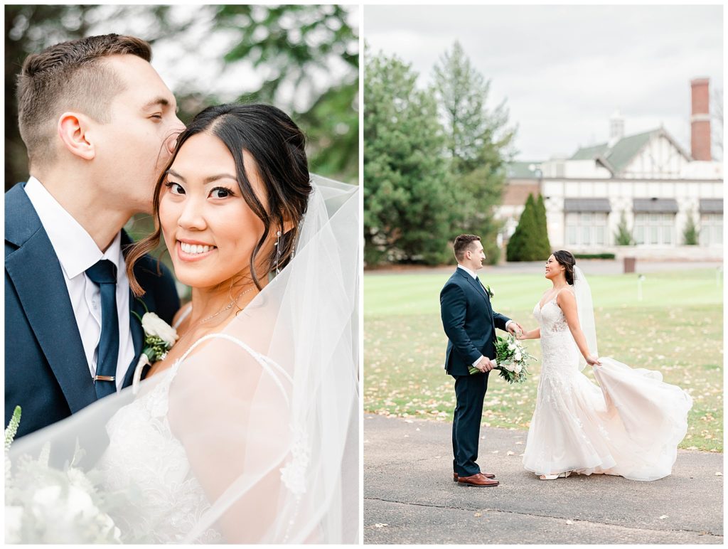 Chevy Chase Country Club is a frequent Chicago suburbs wedding venue that we get the privelage of working at. It’s a beautiful, well light space on its own, but seeing out couples elevate the space into an elegant, pastel colored room is so fun to witness! Somehow, we managed to find a handful of fall-colored trees on the venue grounds, and they worked so beautifully for Mindy and Cody’s wedding portraits.