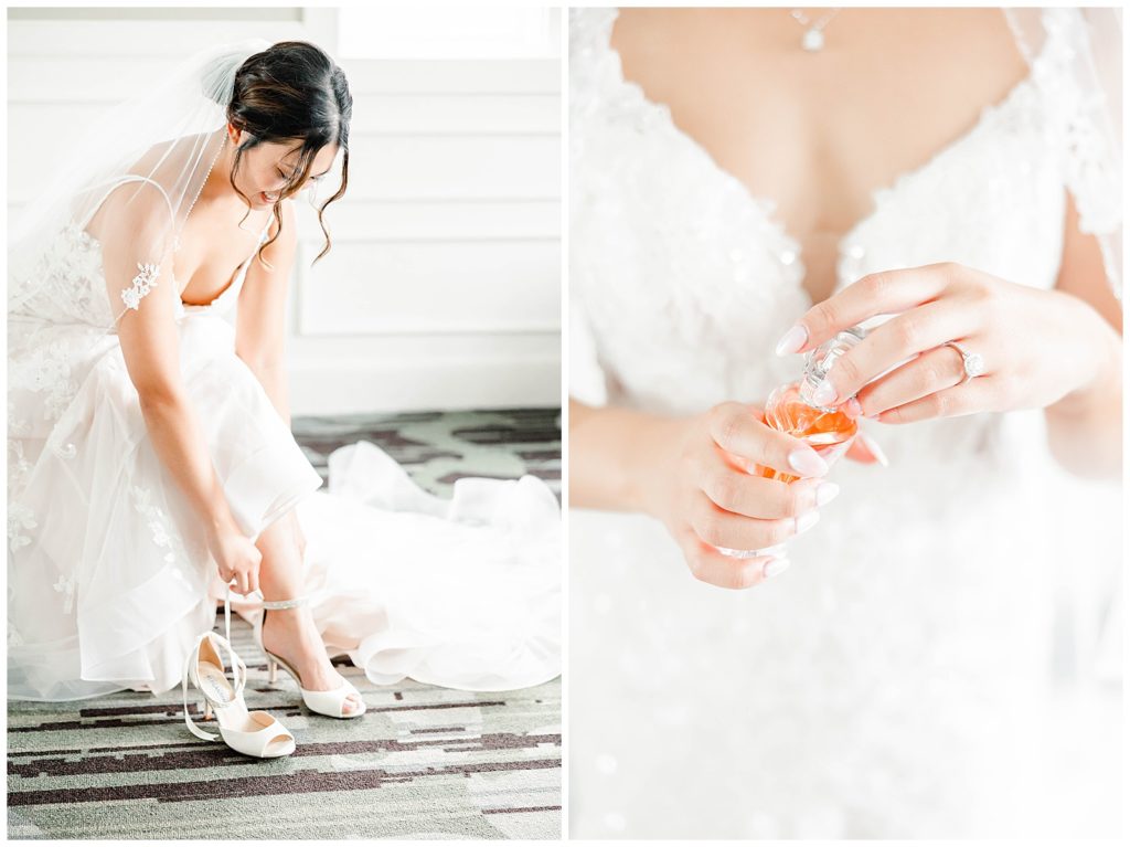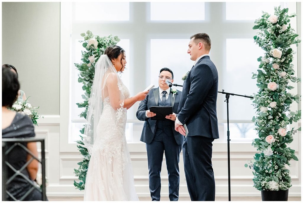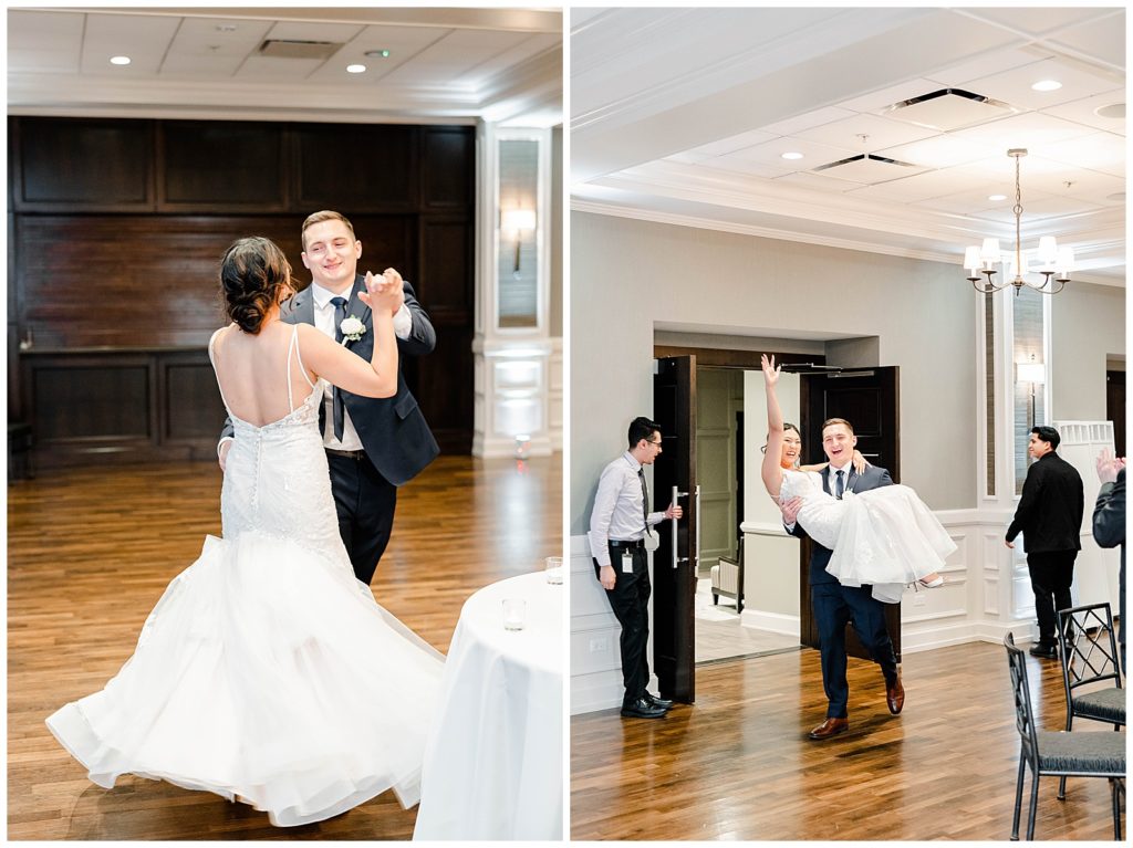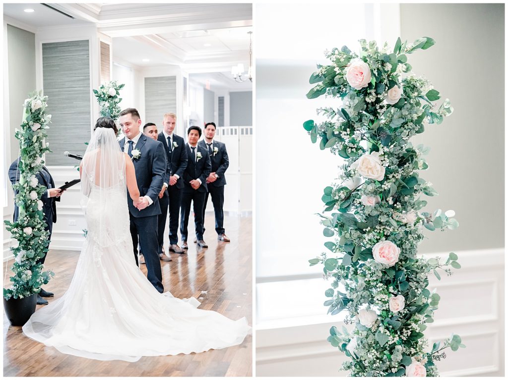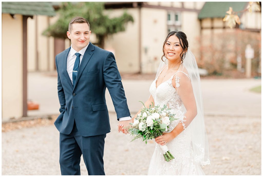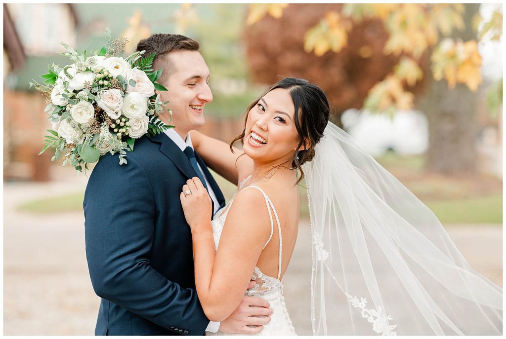 Chevy Chase Country Club is a frequent Chicago suburbs wedding venue that we get the privelage of working at. It’s a beautiful, well light space on its own, but seeing out couples elevate the space into an elegant, pastel colored room is so fun to witness! Somehow, we managed to find a handful of fall-colored trees on the venue grounds, and they worked so beautifully for Mindy and Cody’s wedding portraits.